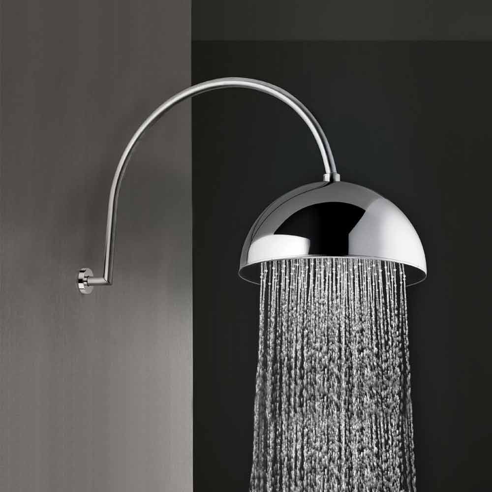 Soffione a campana da parete in acciaio inox cromato moderno Made in Italy.