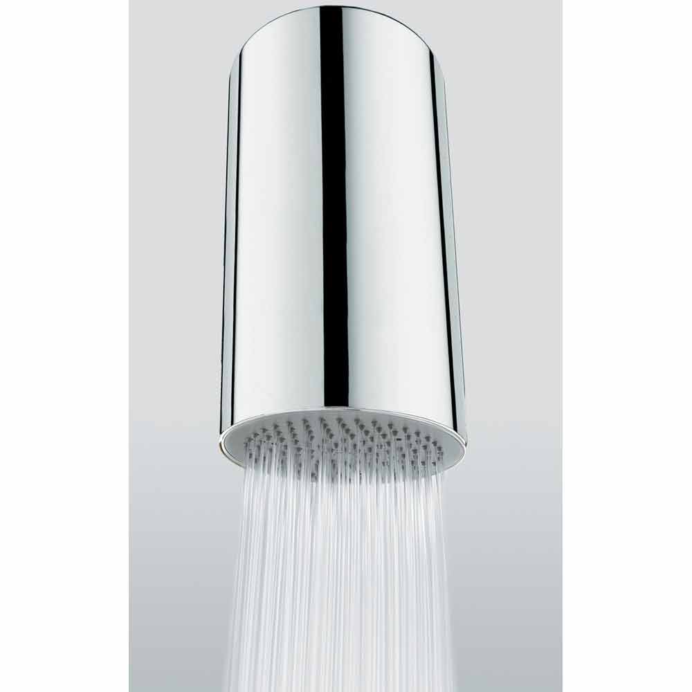 Soffione Dinamic-Inox Ø 140 mm H 300 mm con rivestimento in acciaio inox. Caratterizzato da un unico getto a pioggia "wide rain spray".