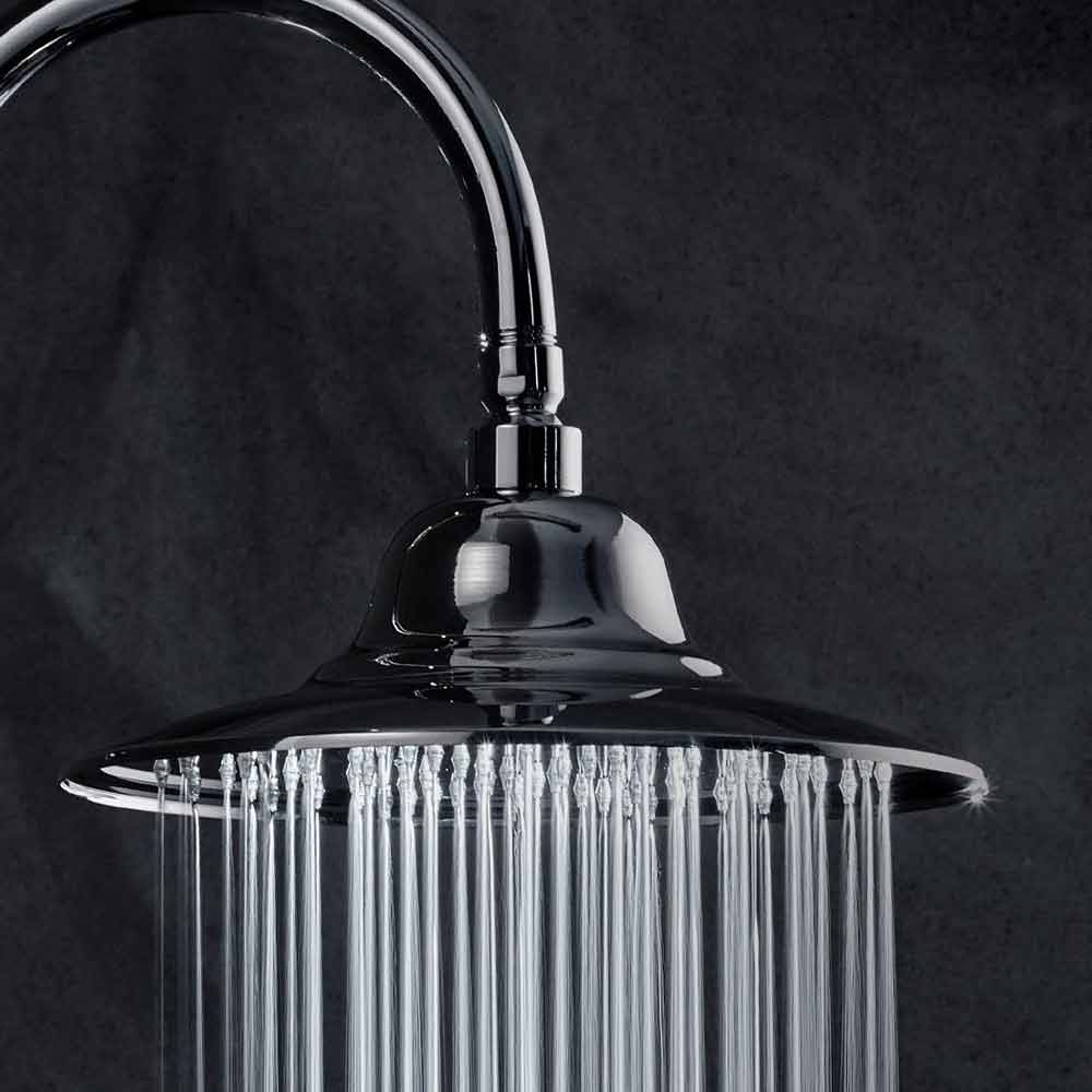 Soffione doccia monogetto design rotondo in acciaio e ottone, prodotto di qualità Made in Italy.