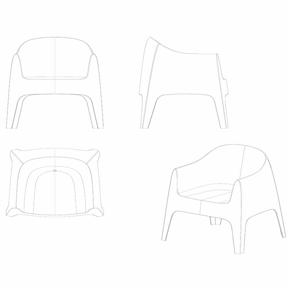 La collezione Solid by Vondom è stata progettata dal due designer italiano Stefano Giovannoni. Questa linea, pur avendo oggetti leggeri, offre stabilità grazie al taglio geometrico e ben definito, come se fosse scolpita nella pietra. È una collezione funzionale grazie alla sua versatilità e al suo design. La poltrona Solid con braccioli, è in polipropilene con additivi minerali, che rendono l'oggetto resistente agli urti e ai raggi UV.