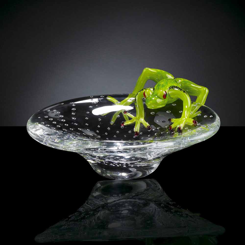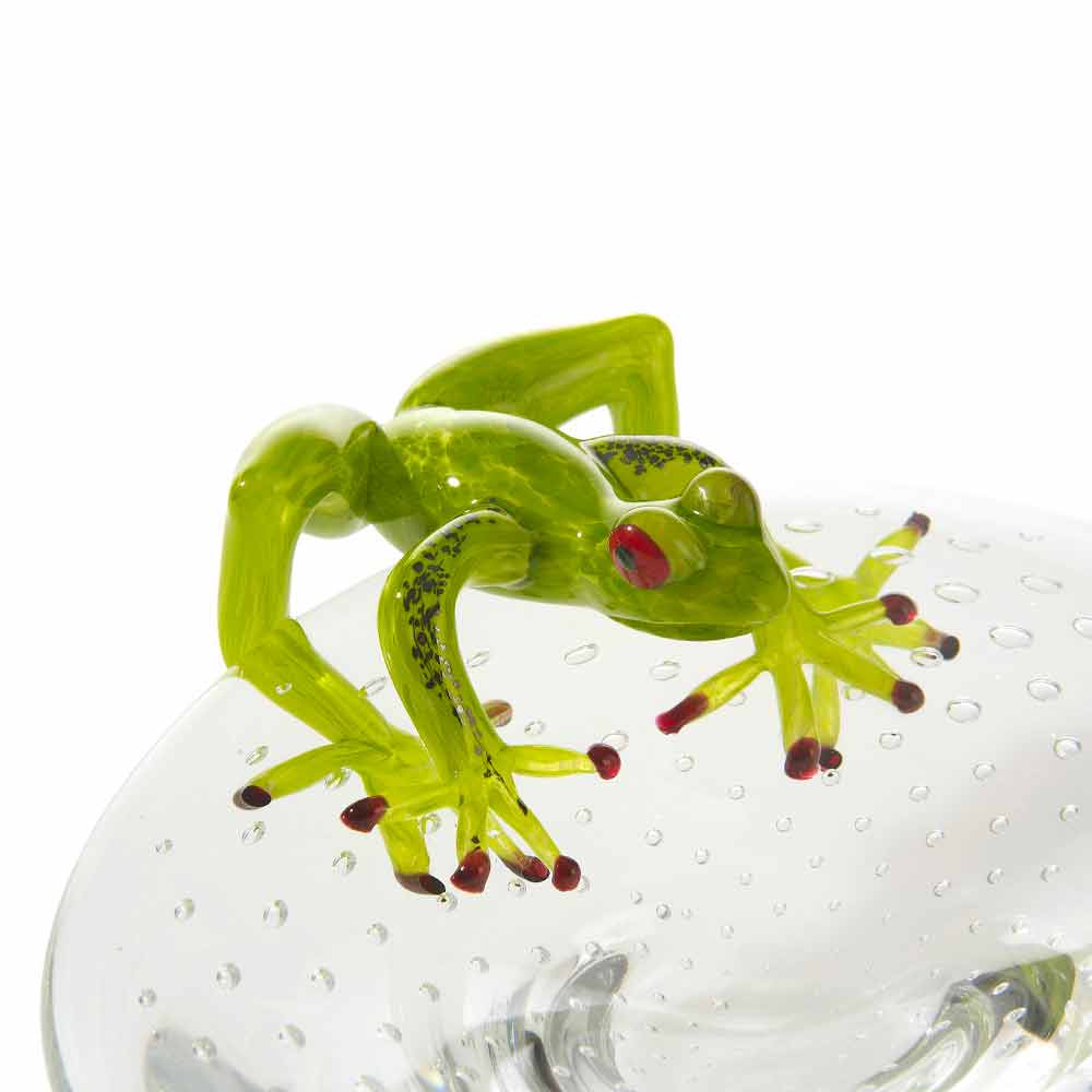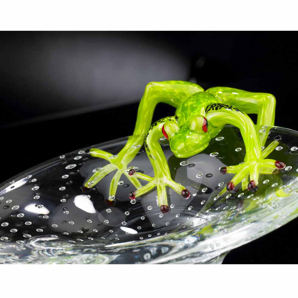 Soprammobile decorativo a forma di vassoio con rana in vetro Made in Italy, pregiato.