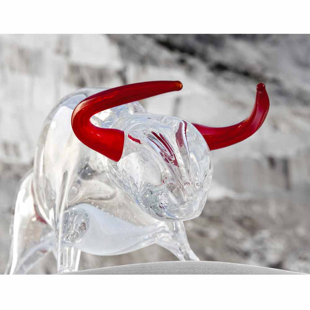 Statua a forma di toro in vetro colorato realizzata in Italia, alta qualità.