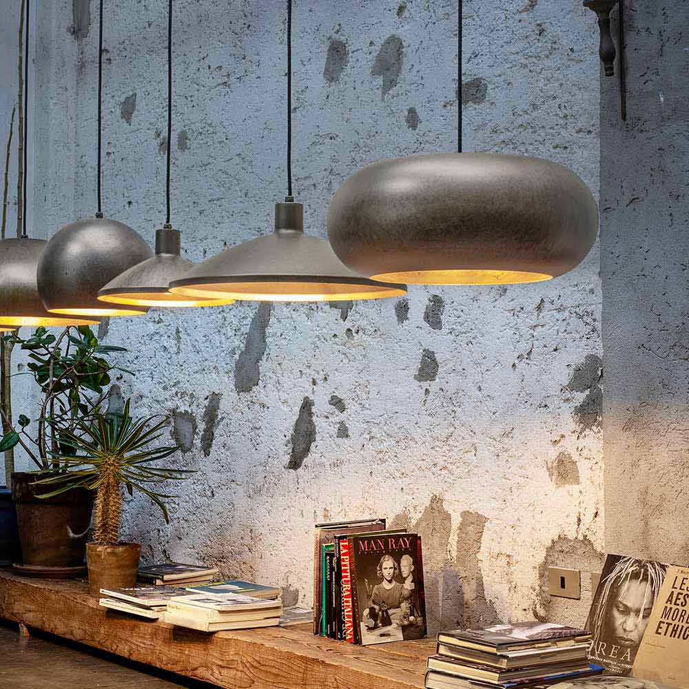 Lampada a sospensione di design made in Italy in acciaio Materia by Aldo Bernardi.