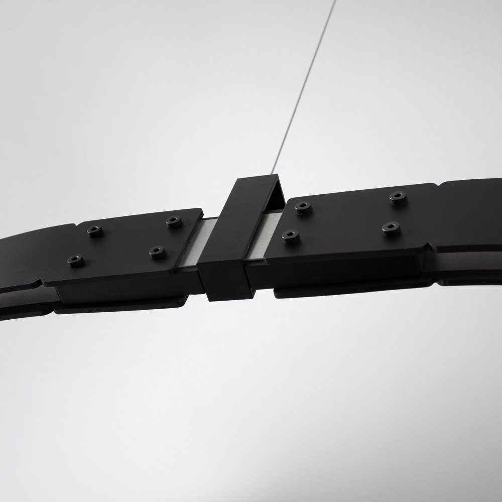 La lampada è realizzata con una struttura in alluminio nero opaco per un design integralmente italiano che, attraverso la sperimentazione anticonvenzionale e la continua ricerca tra tradizione e modernità, è in grado di stupire, osare ed emozionare, concedendo di esprimere le proprie emozioni attraverso un originale e personale uso decorativo della luce.