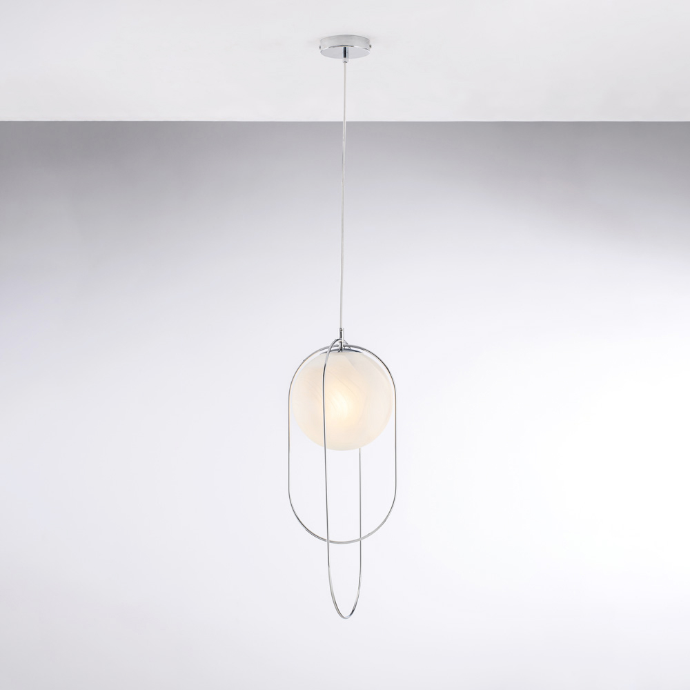 Essenziale e sofisticata, questa sospensione di design in ferro con sfera in vetro è una proposta luminosa dal gusto contemporaneo, pensata per chi ama linee pulite ed eleganza discreta. La struttura slanciata in metallo accoglie una sfera luminosa dal diametro di 20 cm, creando un raffinato equilibrio tra forma e luce.