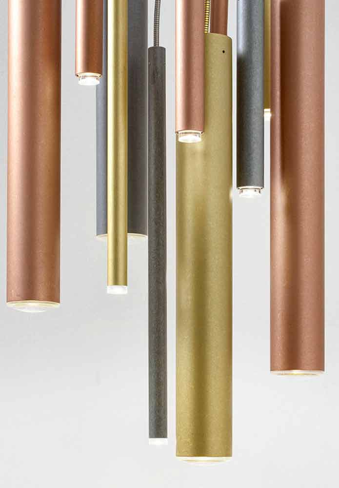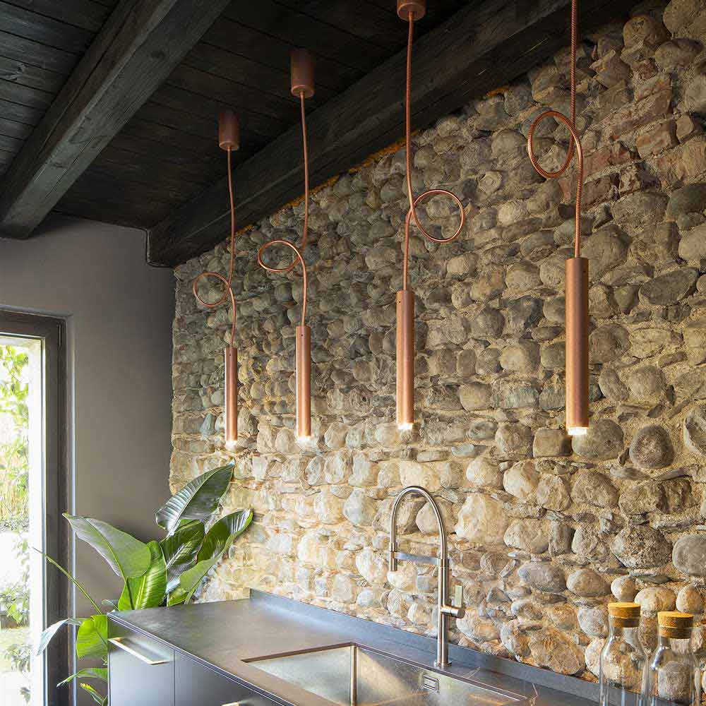 Tubò è una raffinata lampada a sospensione tubolare con cavo flessibile,