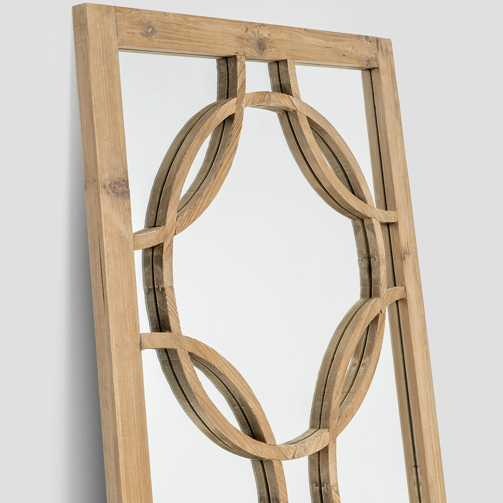 Ideale per ingressi, soggiorni o camere da letto, questa specchiera unisce funzione e decorazione, diventando un punto focale dell’arredo in ambienti dallo stile rustico, shabby o naturale.