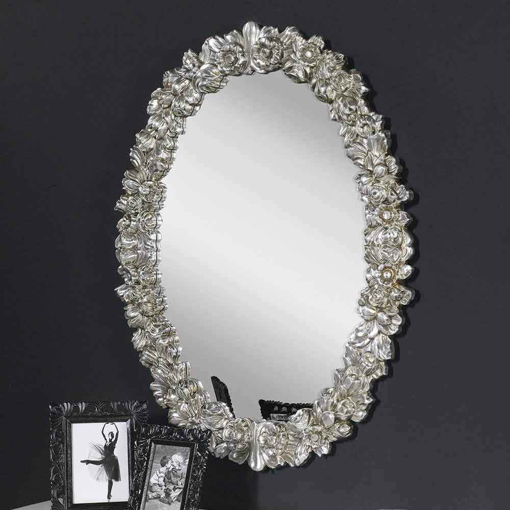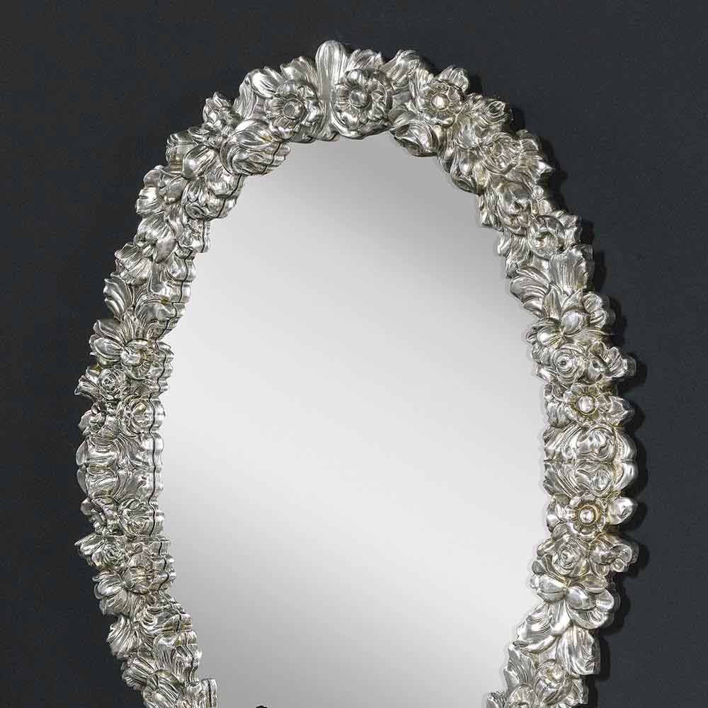 Il design organico e fluente dei fiori in rilievo crea un bordo tridimensionale intorno allo specchio, che cattura la luce e riflette i dettagli con una vivacità straordinaria. Questa specchiera non è solo un oggetto pratico, ma un'opera d'arte che porta una dimensione scultorea e un punto focale di bellezza in qualsiasi stanza, da un salotto elegante a una camera da letto sofisticata.