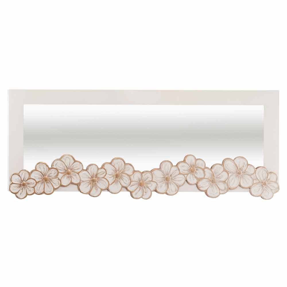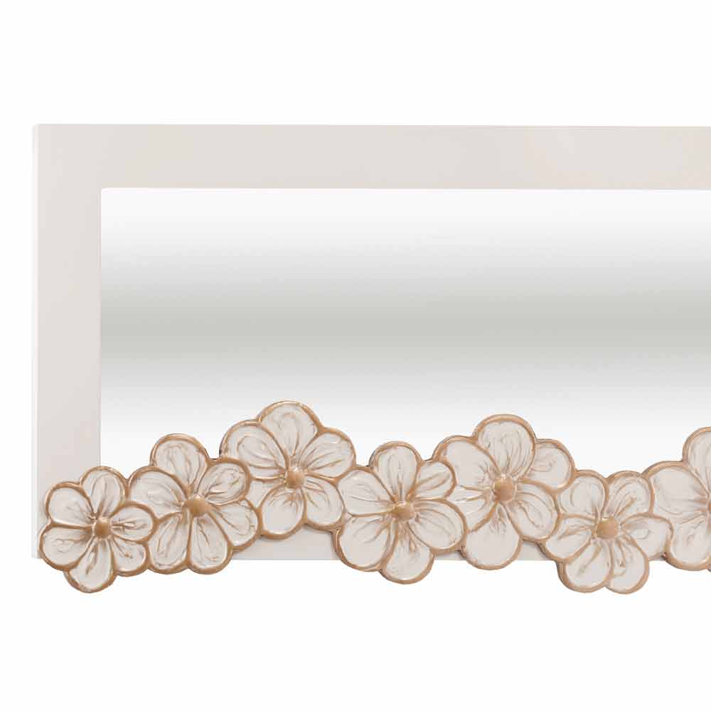 Senapina è la specchiera sagomata a muro dal design richiamante la natura grazie alla composizione floreale su un lato.