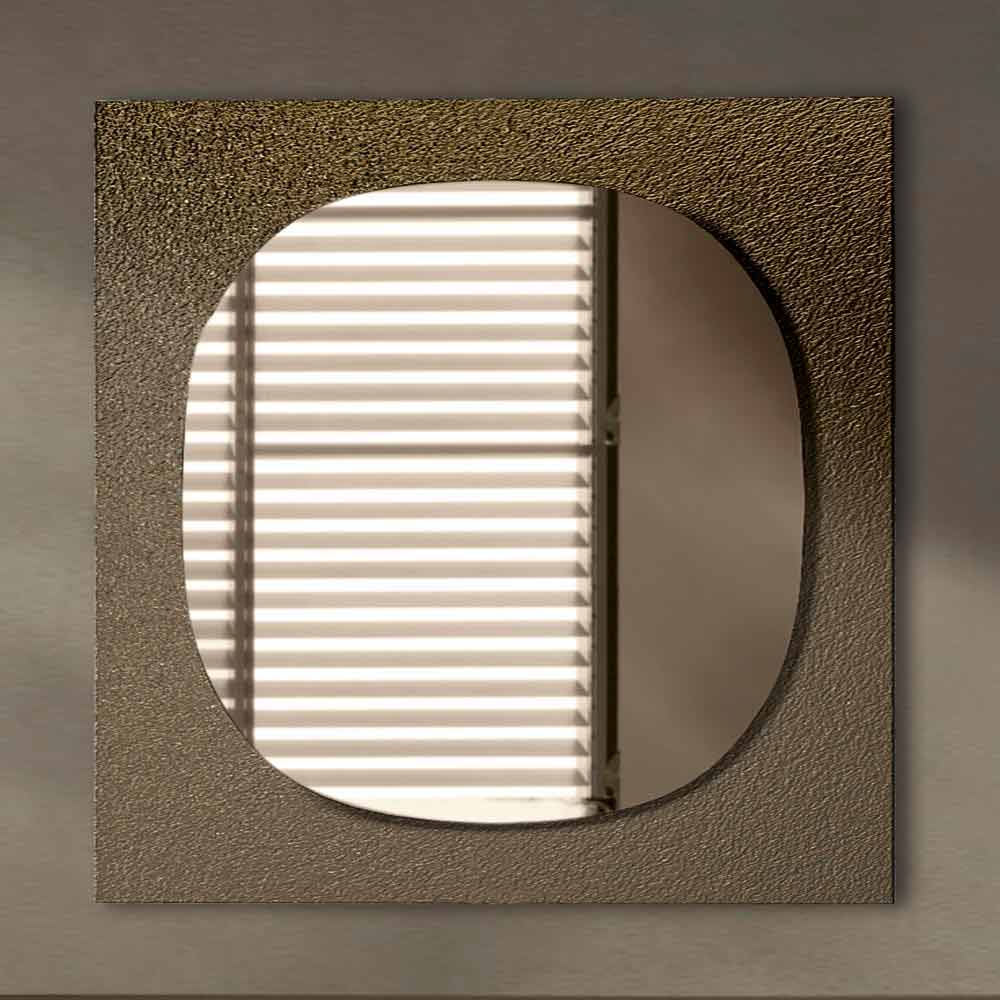 Specchio da parete in vetro forgiato finitura bronzo realizzato in Italia.