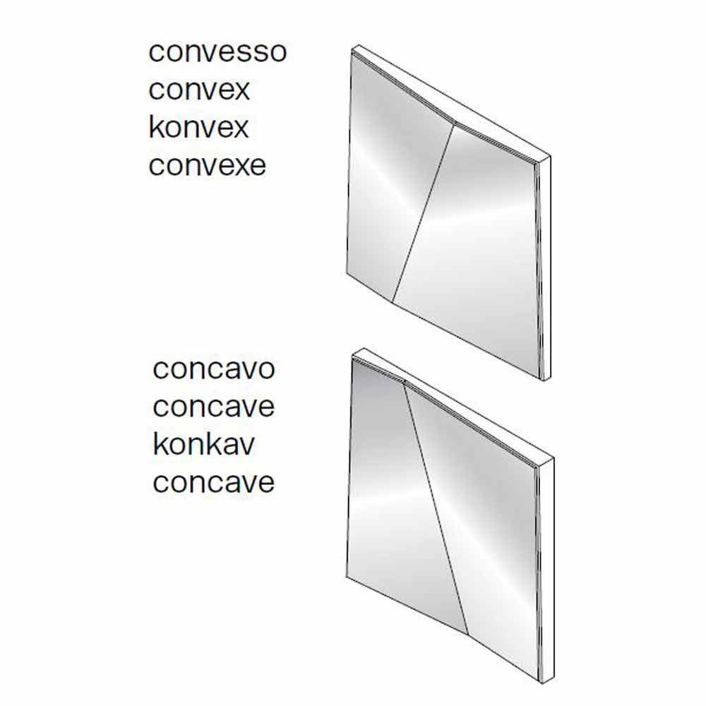 Lo specchio si presenta con 4 sezioni concave e 4 sezioni convesse che abbinate insieme creano un risultato finale che conferisce un senso di movimento e dinamicità.