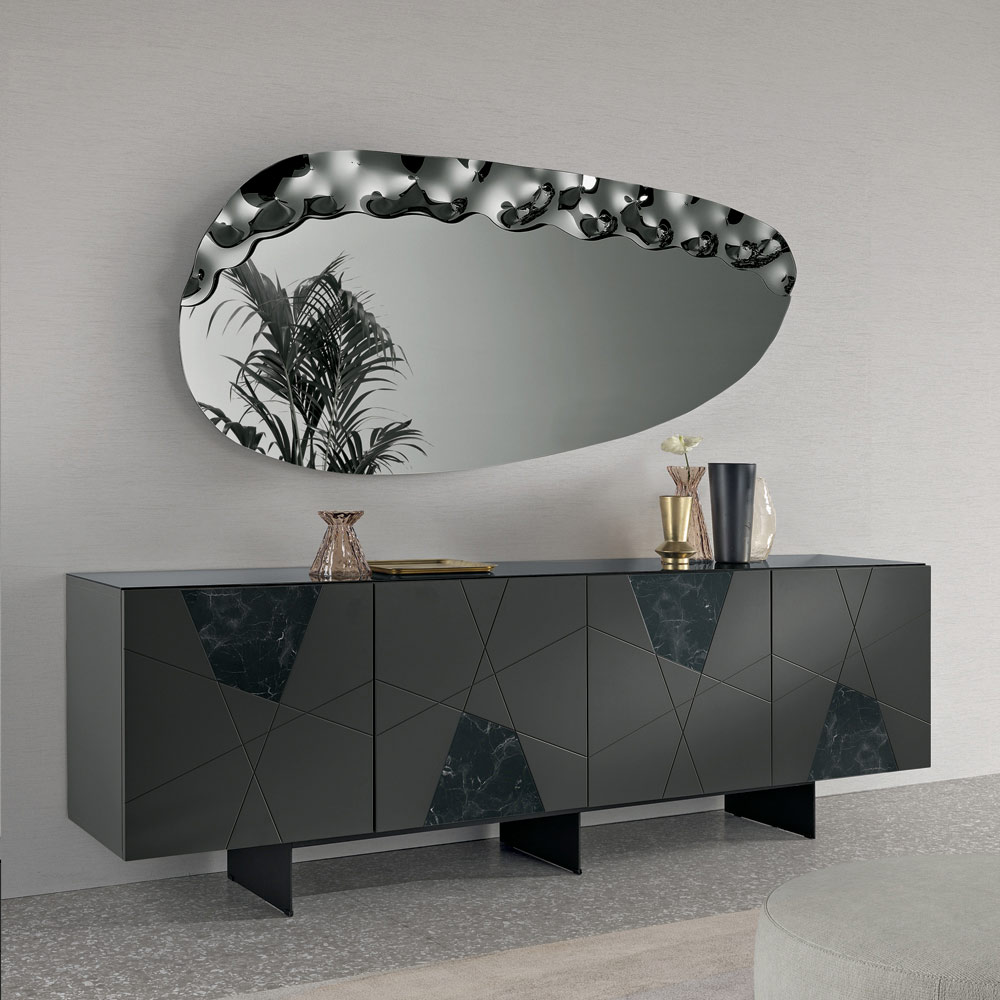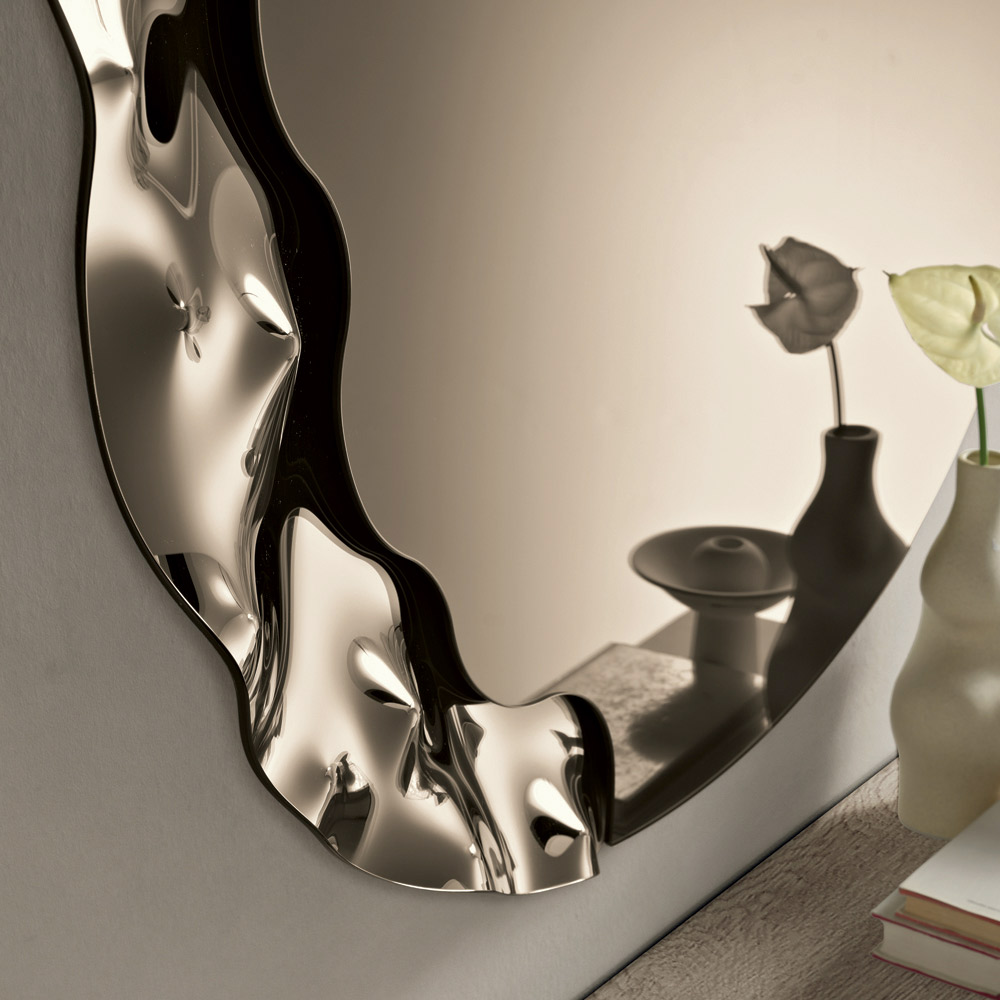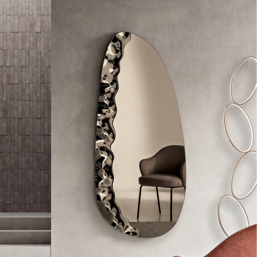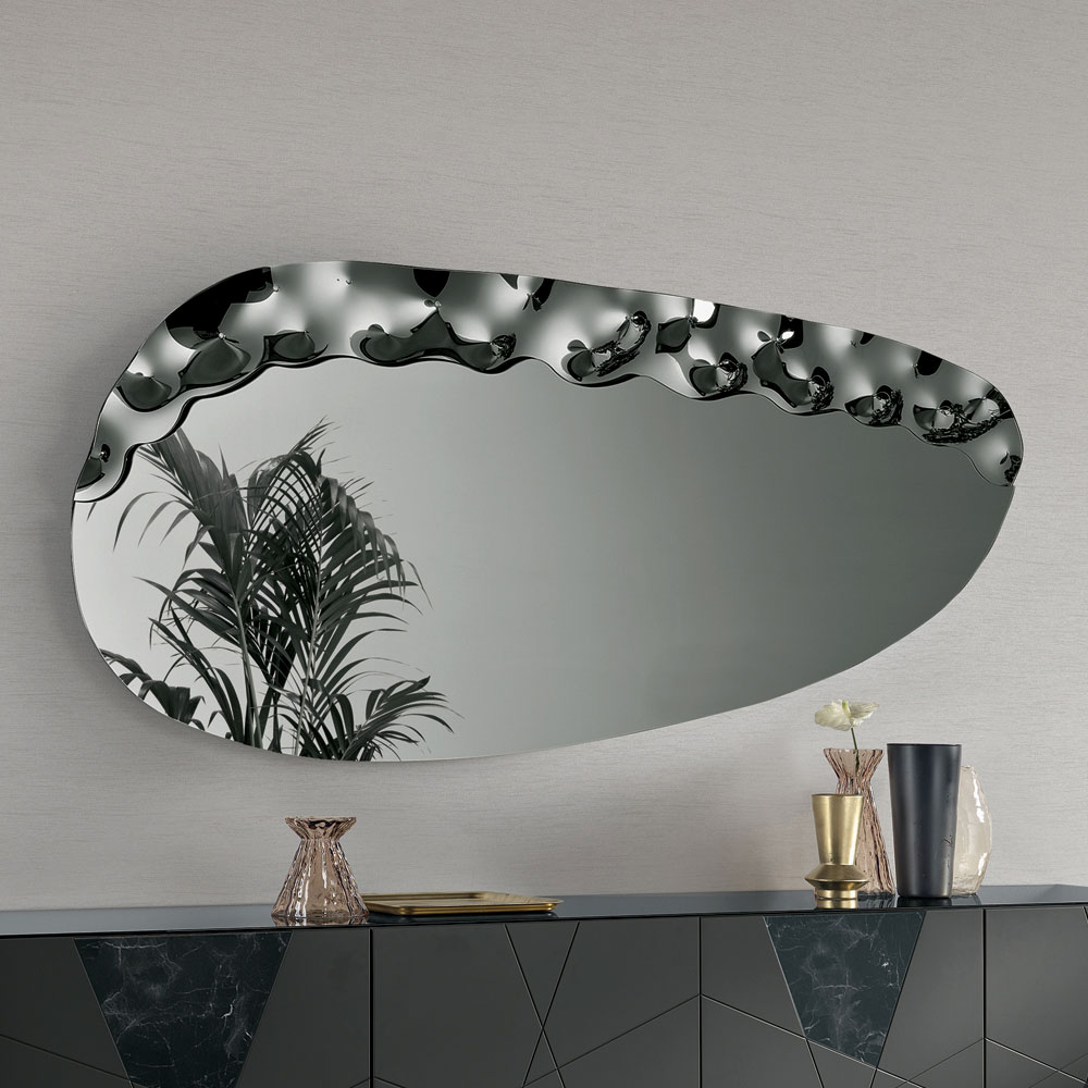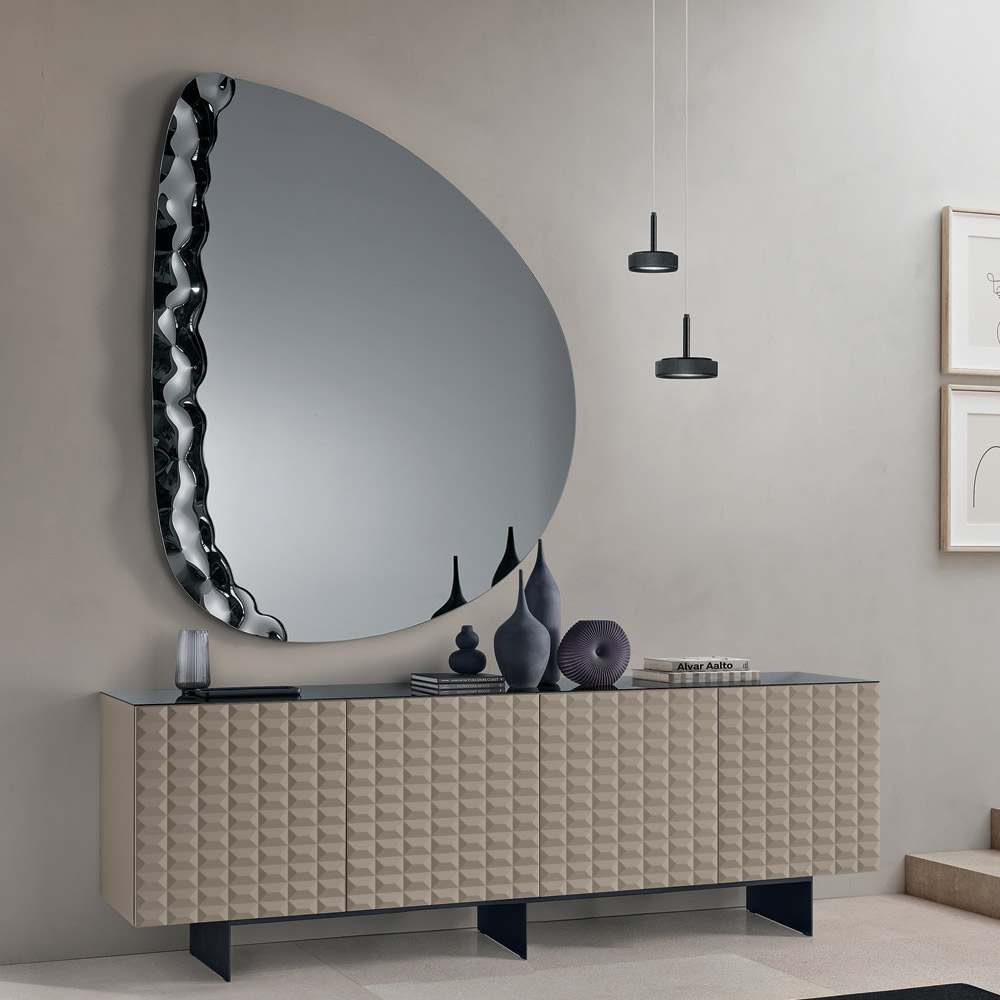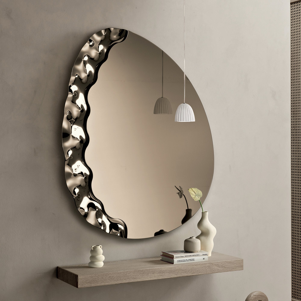 Elegante specchio da parete di design Made in Italy, ideale per valorizzare ambienti come ingresso, soggiorno o zona notte. Il suo design contemporaneo unisce linee morbide e dettagli materici, trasformando lo specchio in un raffinato elemento decorativo capace di arricchire la parete con eleganza.