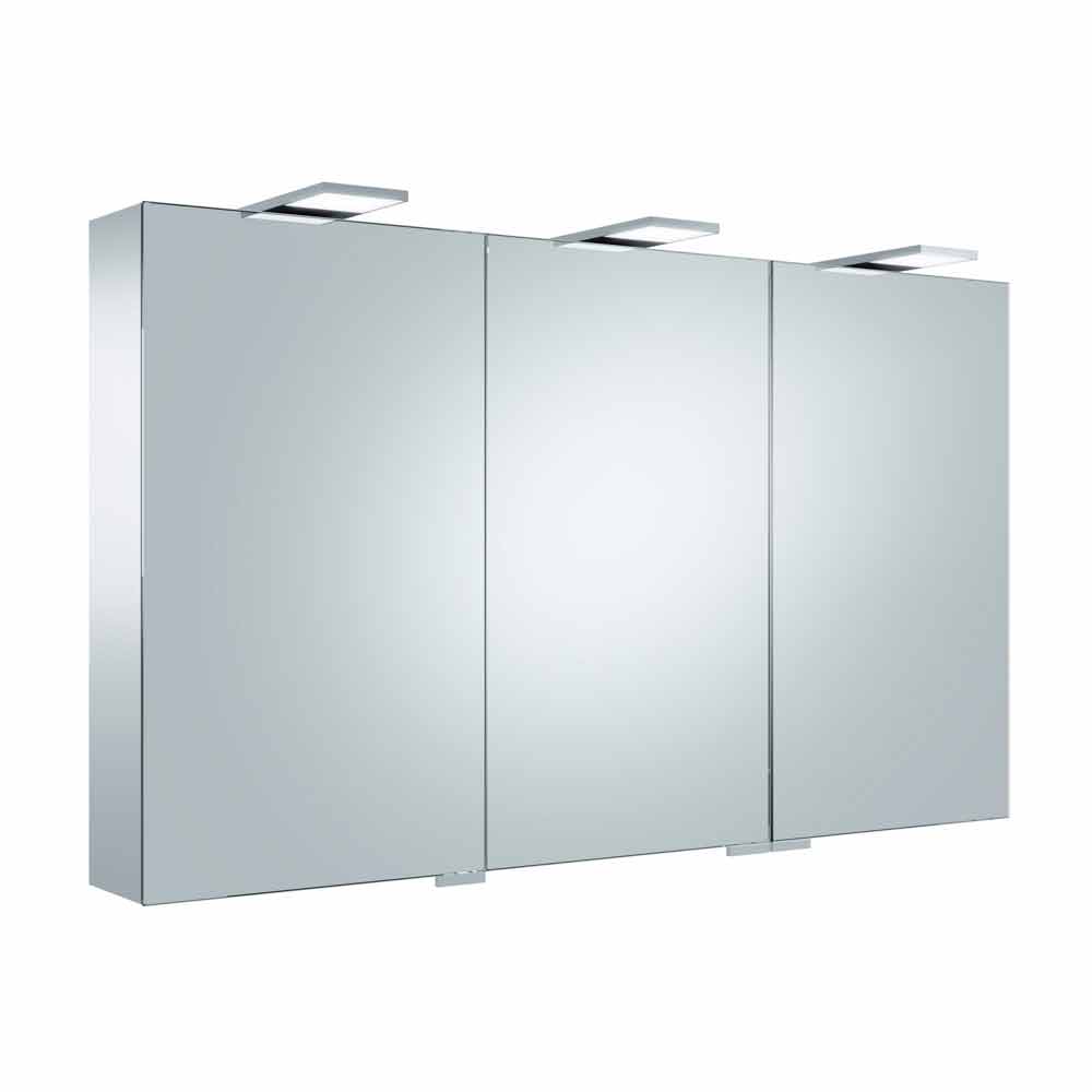 Specchio contenitore ad 3 ante battenti a specchio (anche interno) e specchi laterali dotato di illuminazione LED.