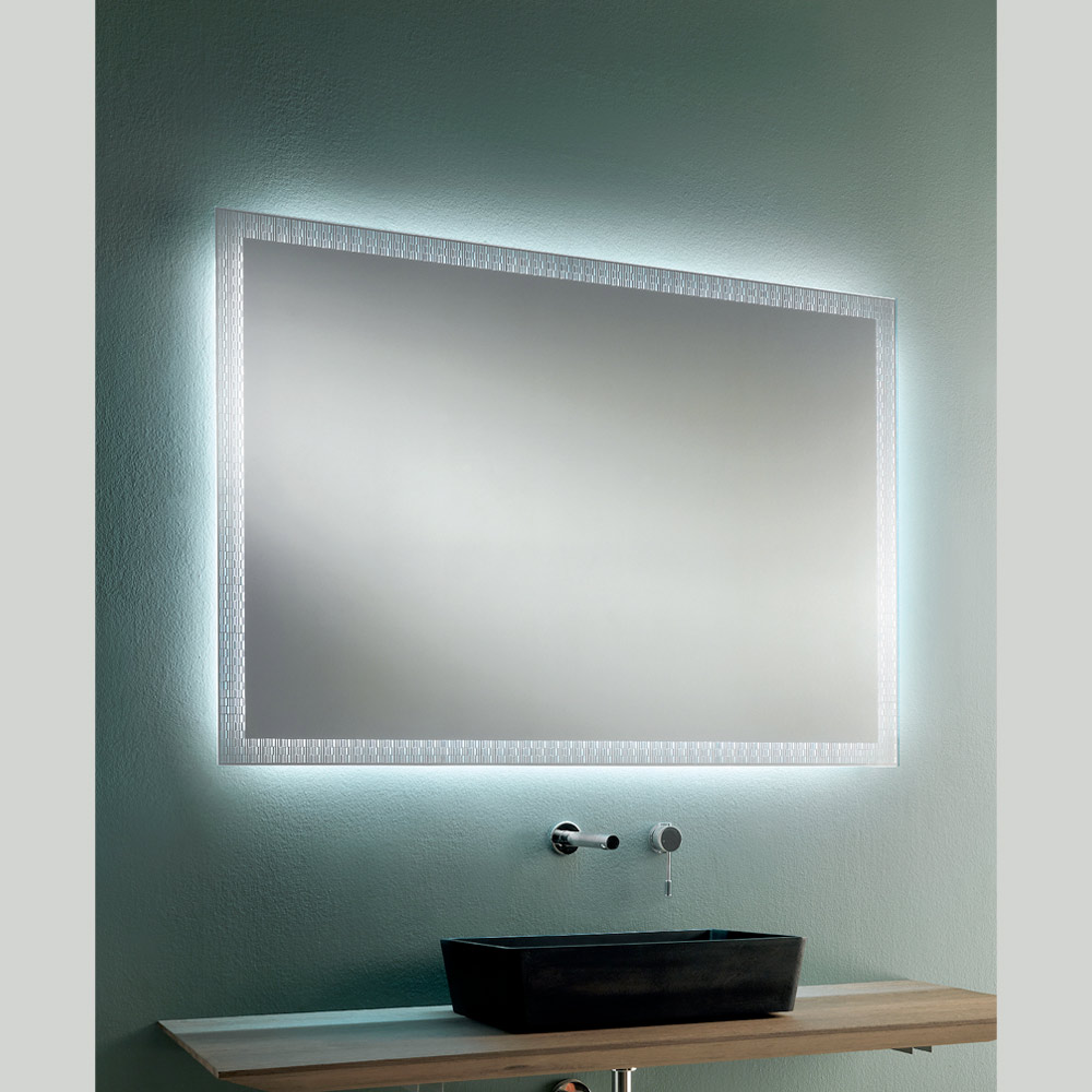 La retroilluminazione LED emana una luce calda e accogliente, creando un'atmosfera di serenità e comfort. Questa luce non solo migliora la funzionalità dello specchio ma aggiunge anche una dimensione di design che può trasformare qualsiasi stanza, da un bagno moderno a un ingresso elegante, in uno spazio più aperto e invitante.