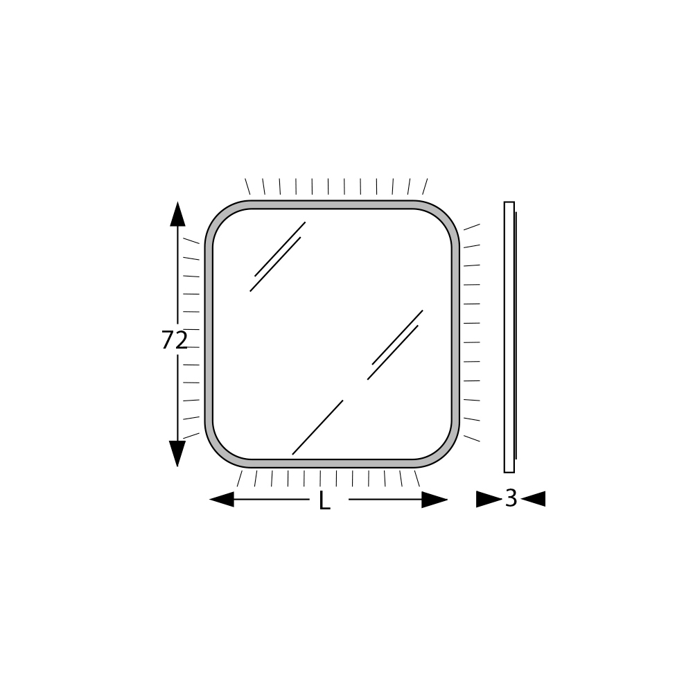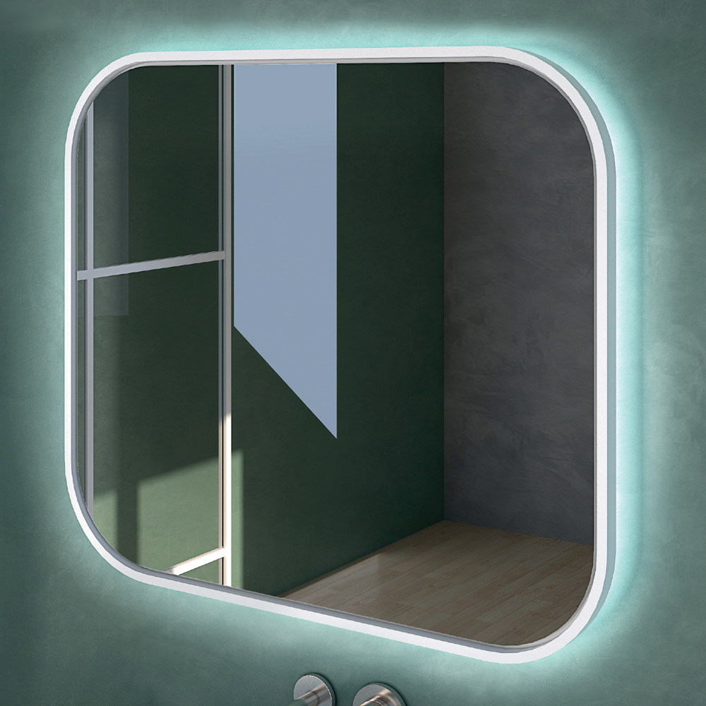 La forma arrotondata con angoli raffinati rende questo specchio un'aggiunta versatile e attraente per una varietà di spazi, dal bagno alla camera da letto, o come accento distintivo in un'area living. La tecnologia LED non solo enfatizza il design unico ma è anche efficiente dal punto di vista energetico, garantendo un illuminazione di lunga durata.