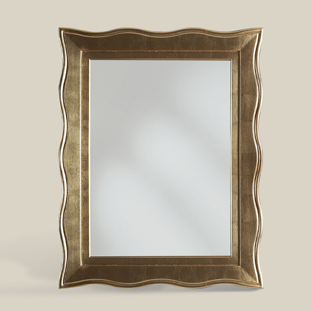Elegante specchiera dallo stile classico realizzata con cornice sagomata in foglia oro. Un complemento unico e raffinato, completamente realizzato in Italia da abili maestri artigiani, maestri d'arte che rifiniscono ogni complemento con sapienza e gusto per l'eleganza. La produzione viene effettuata utilizzando materiali pregiati, ed eseguendo le lavorazioni a mano con la massima cura e professionalità che contraddistingue i prodotti Made in Italy.