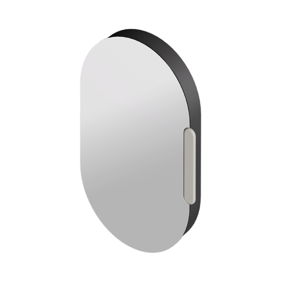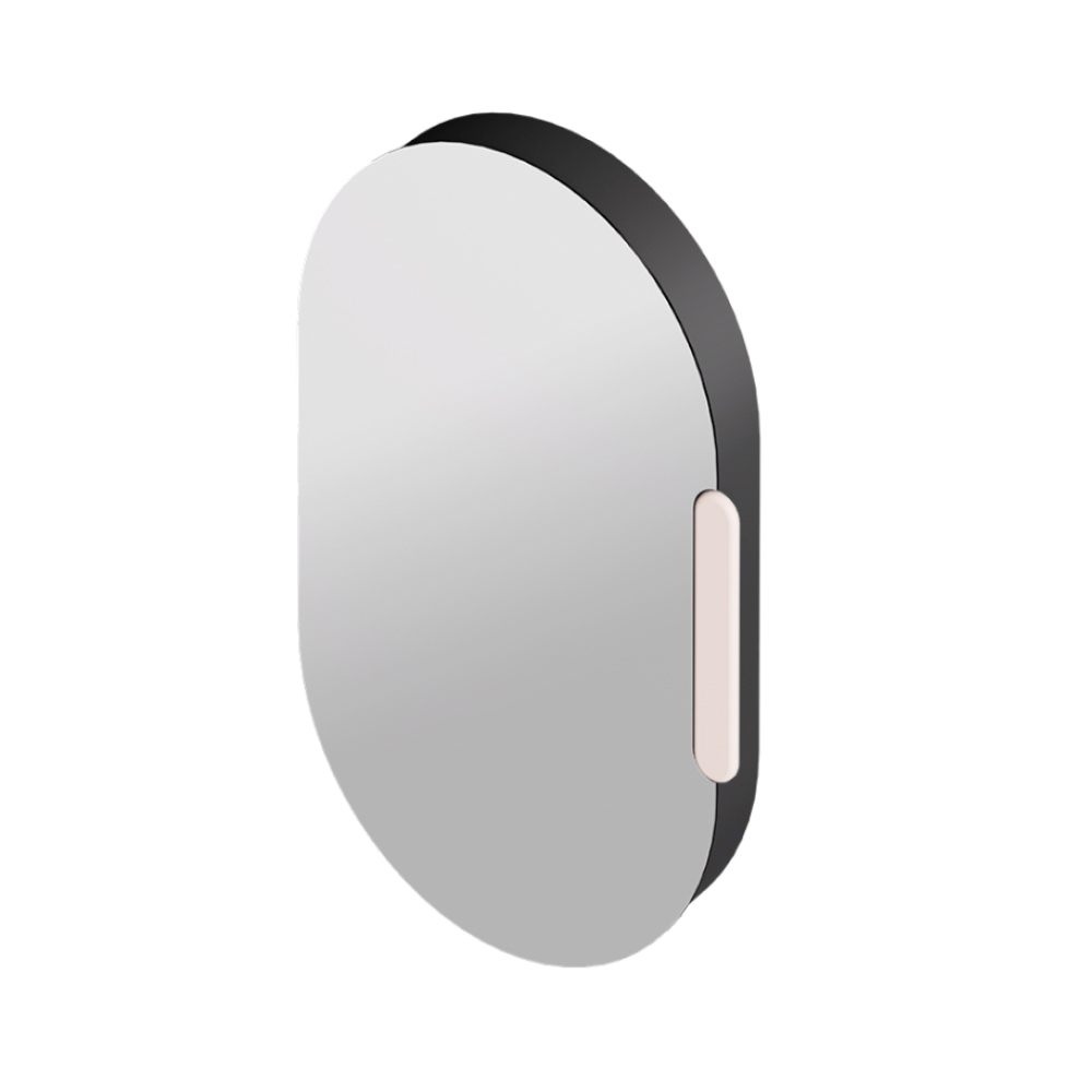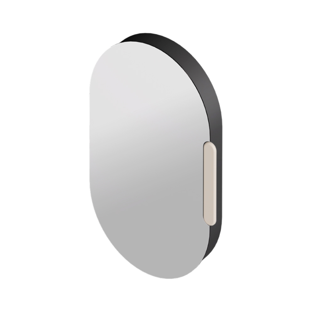 Questo specchio dalla forma ovale, con cornice in ceramica, non è solo un elemento decorativo ma anche un contenitore intelligente: dietro la superficie riflettente si nascondono pratici vani a giorno, ideali per organizzare con eleganza i piccoli oggetti del quotidiano.