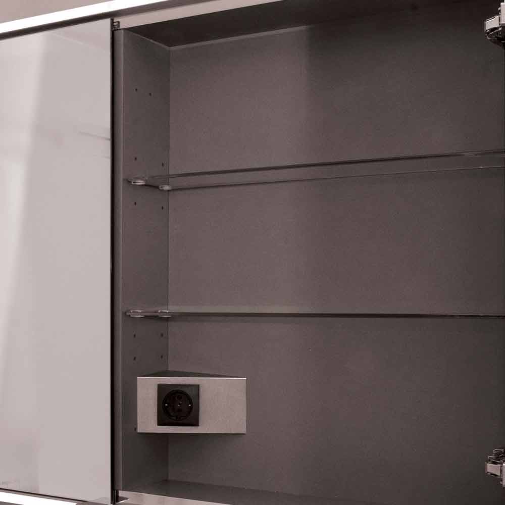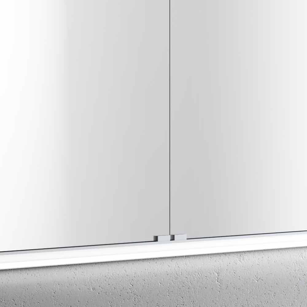 Armadietto con 2 ante a specchio dalle linee pure dove l'illuminazione diviene elemento di design. Struttura in FENIX, materiale polimerico con trattamento nano tecnologico, idrorepellente, anti impronta e morbido al tatto. Completo di presa ed interruttore.