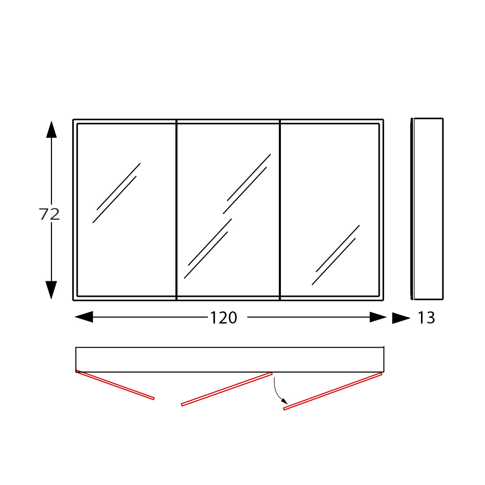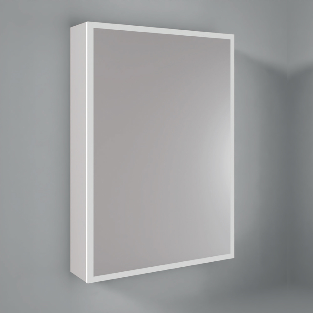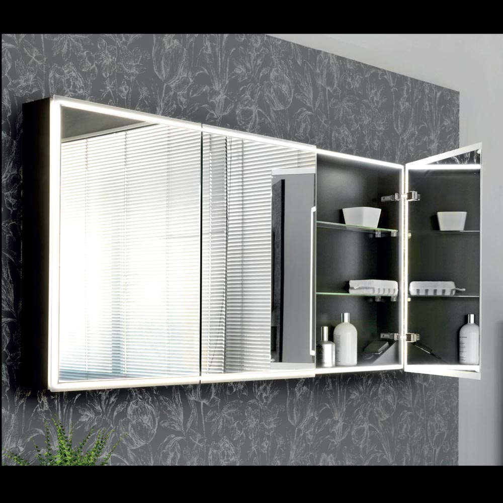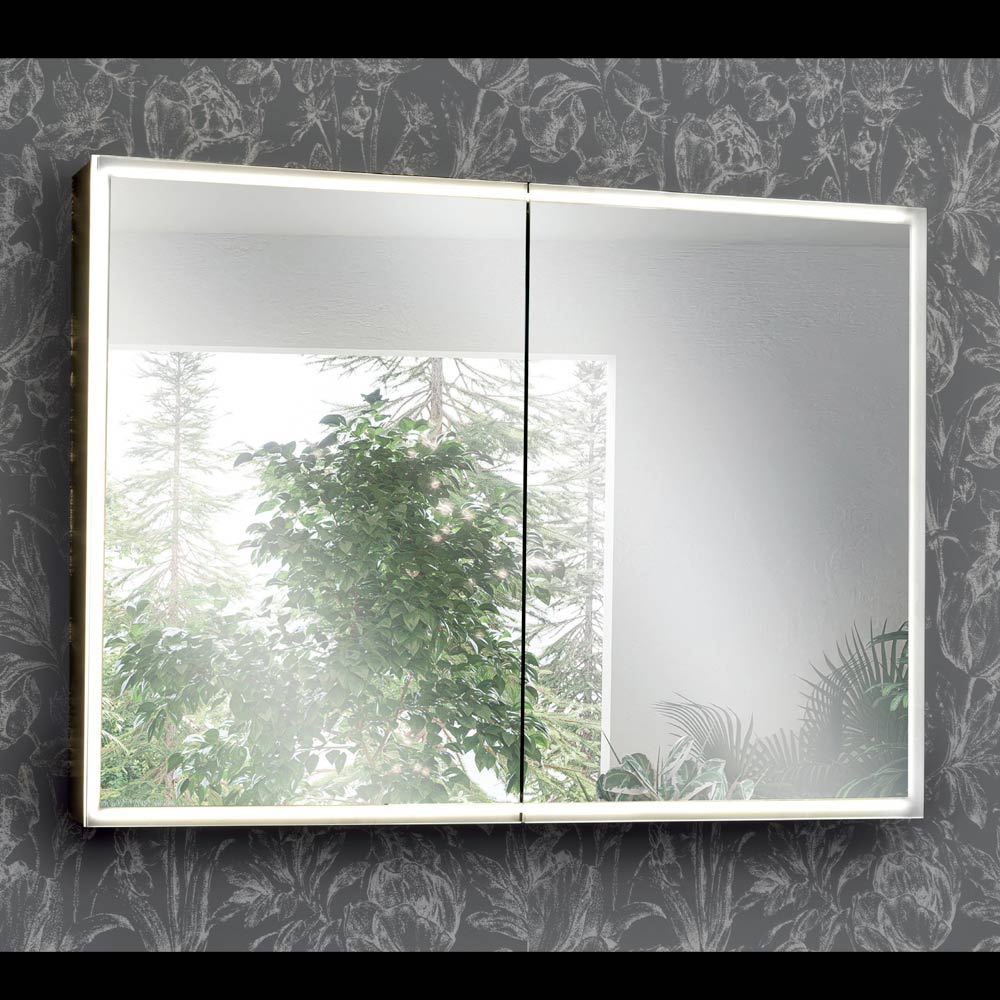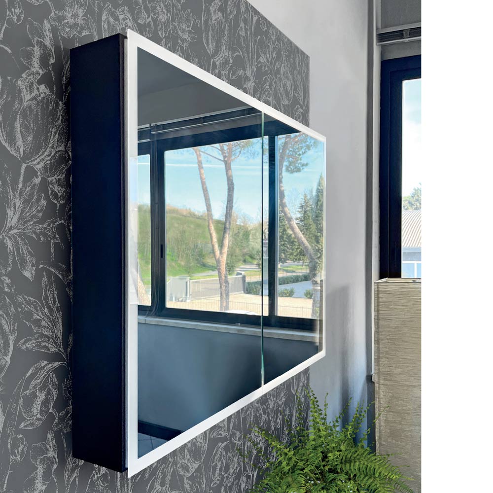 Le ante con specchio doppio si aprono per svelare un'area interna spaziosa, ideale per mantenere in ordine tutti i vostri prodotti per la cura personale. La luce LED non solo mette in risalto il design ma fornisce anche una luce funzionale, rendendolo perfetto per il trucco, la cura della pelle, o come illuminazione addizionale nel bagno.