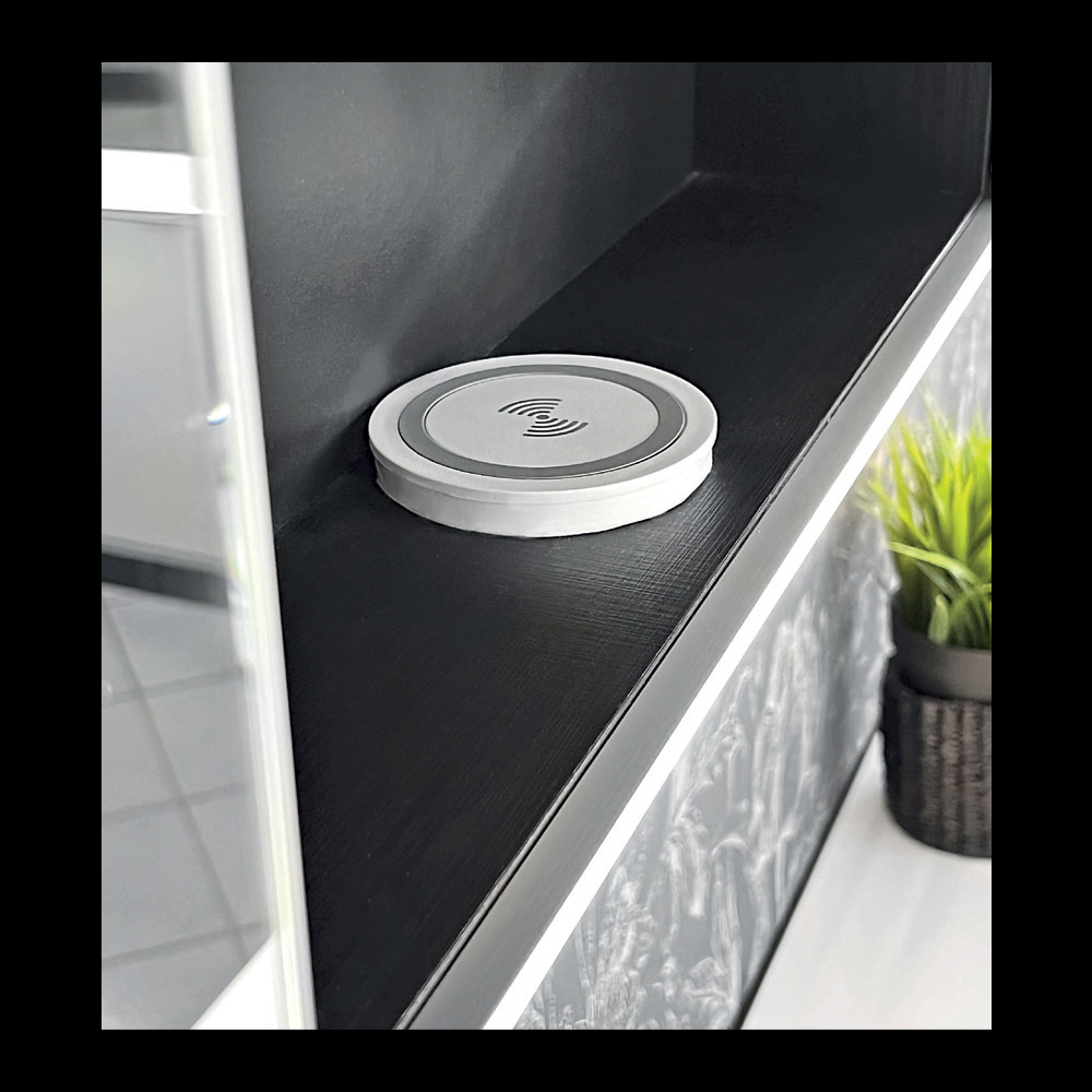 Questo armadietto è un capolavoro di design che esalta la funzionalità attraverso la bellezza naturale del legno. Combinando lo spazio di stoccaggio essenziale con una estetica raffinata, questo armadietto è completato da una luce LED sottile, che incornicia il pezzo con una luminosità soffusa ed elegante.