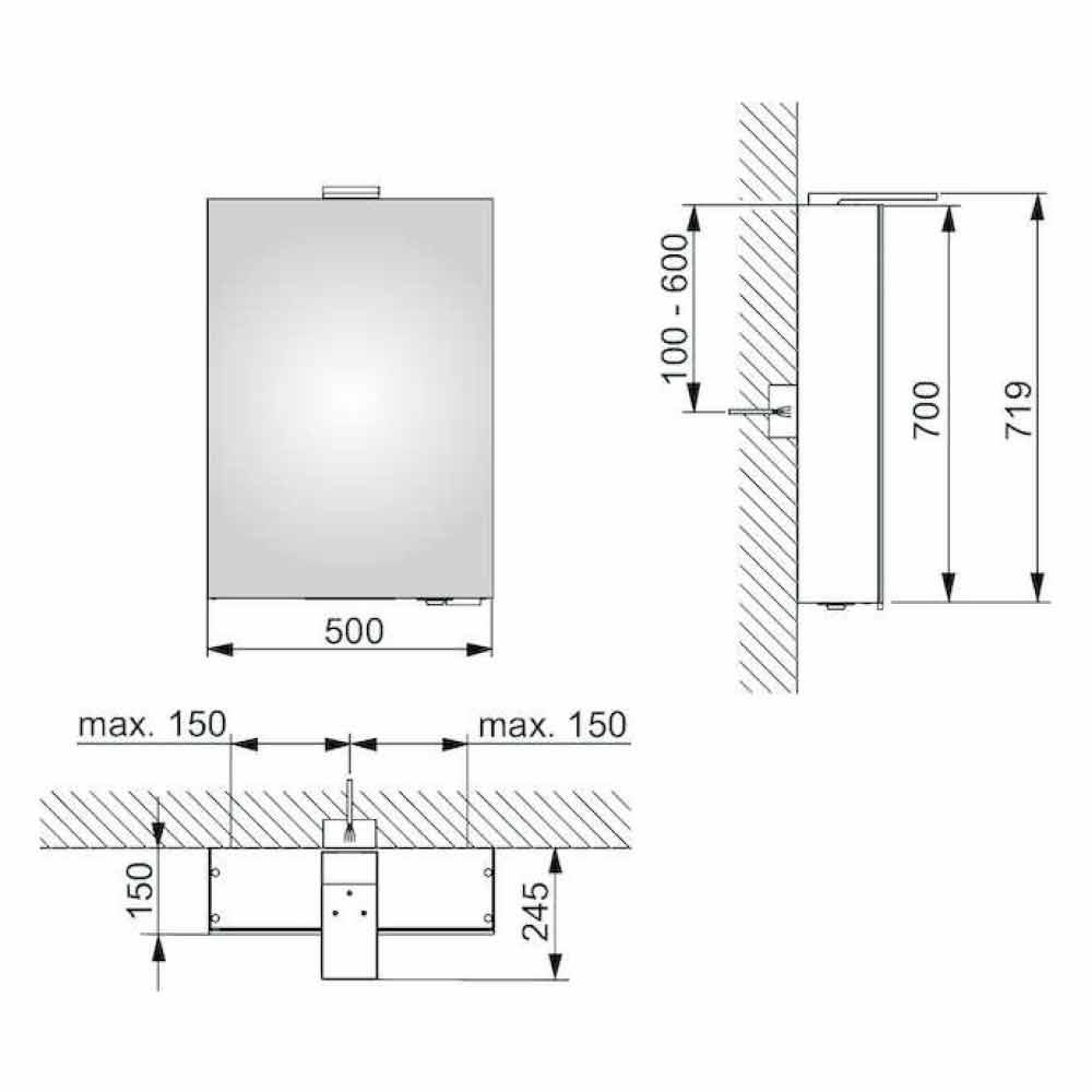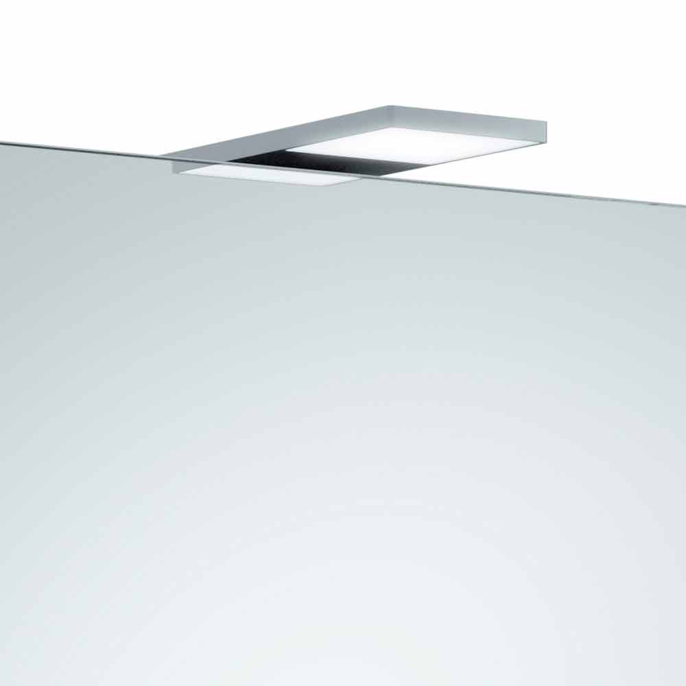 Specchio contenitore ad un'anta battente a specchio (anche interno) e specchi laterali dotato di illuminazione LED.