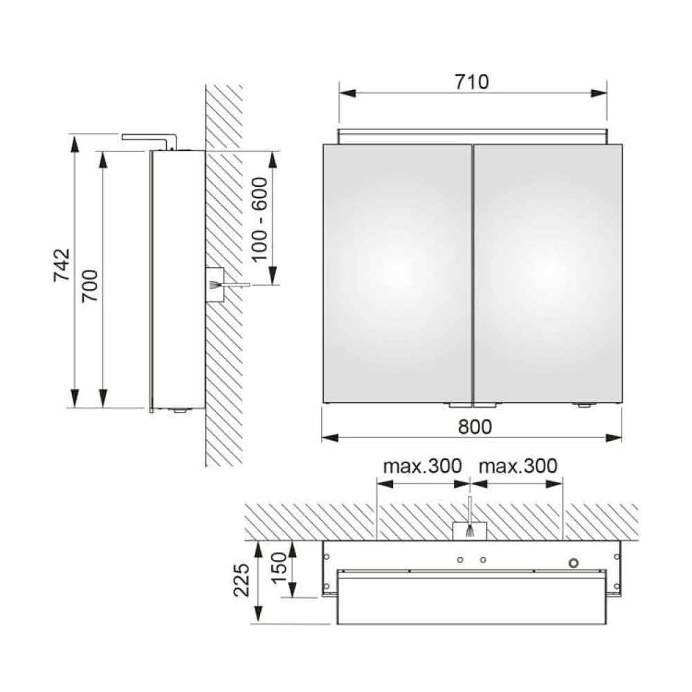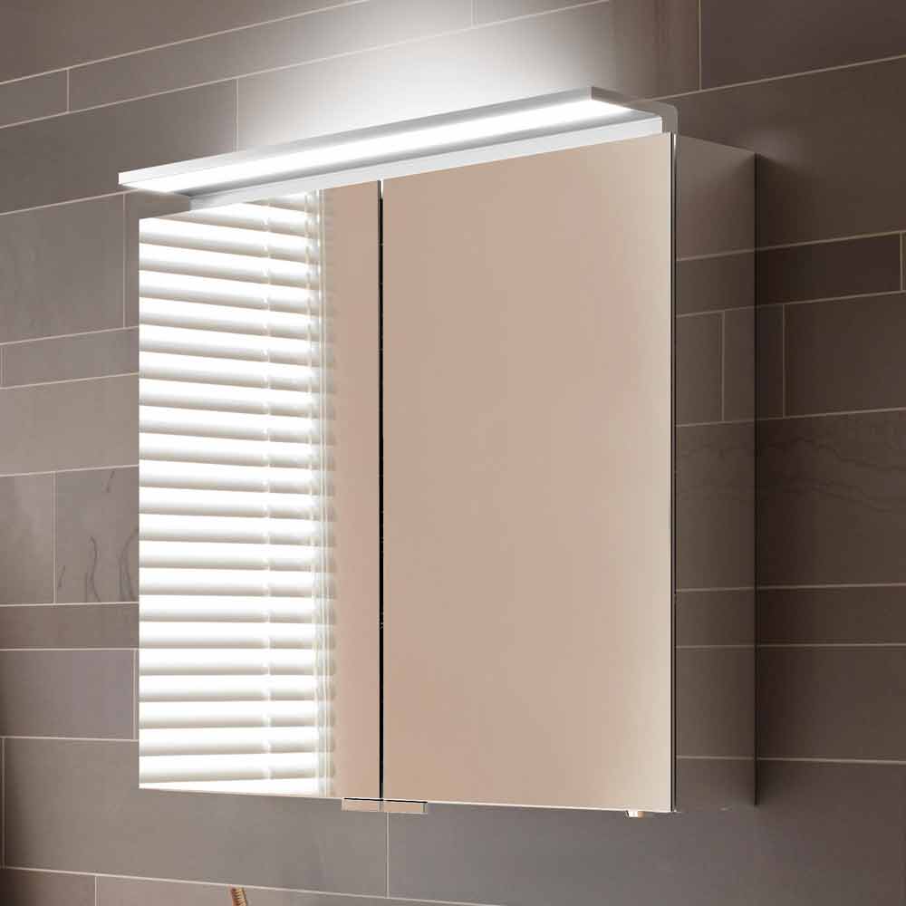 Specchio contenitore con 2 ante battenti a specchio (anche interno) e specchi laterali dotato di illuminazione LED.