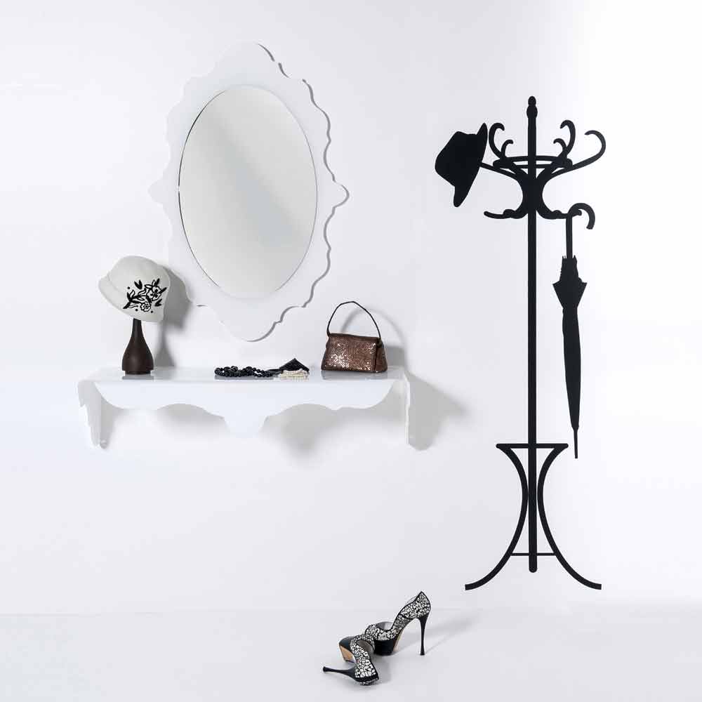 Specchio da parete bianco di design Joy cornice decorata,made in Italy