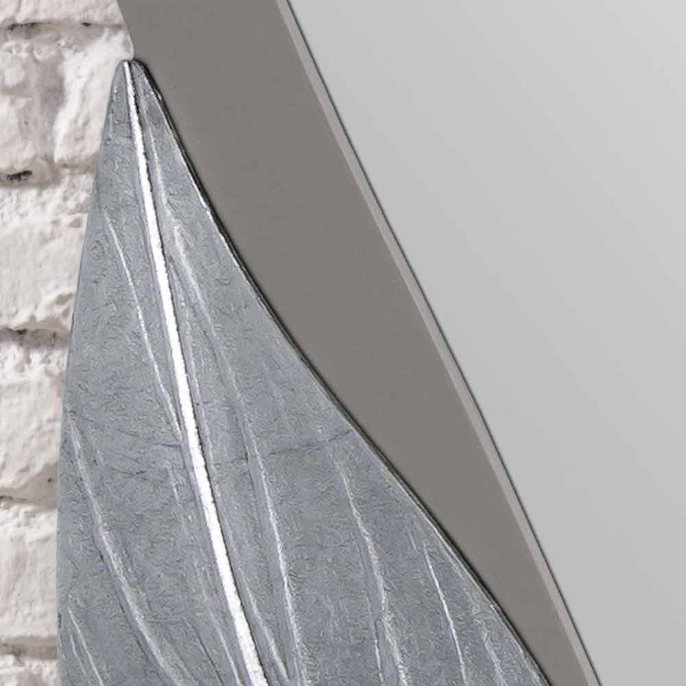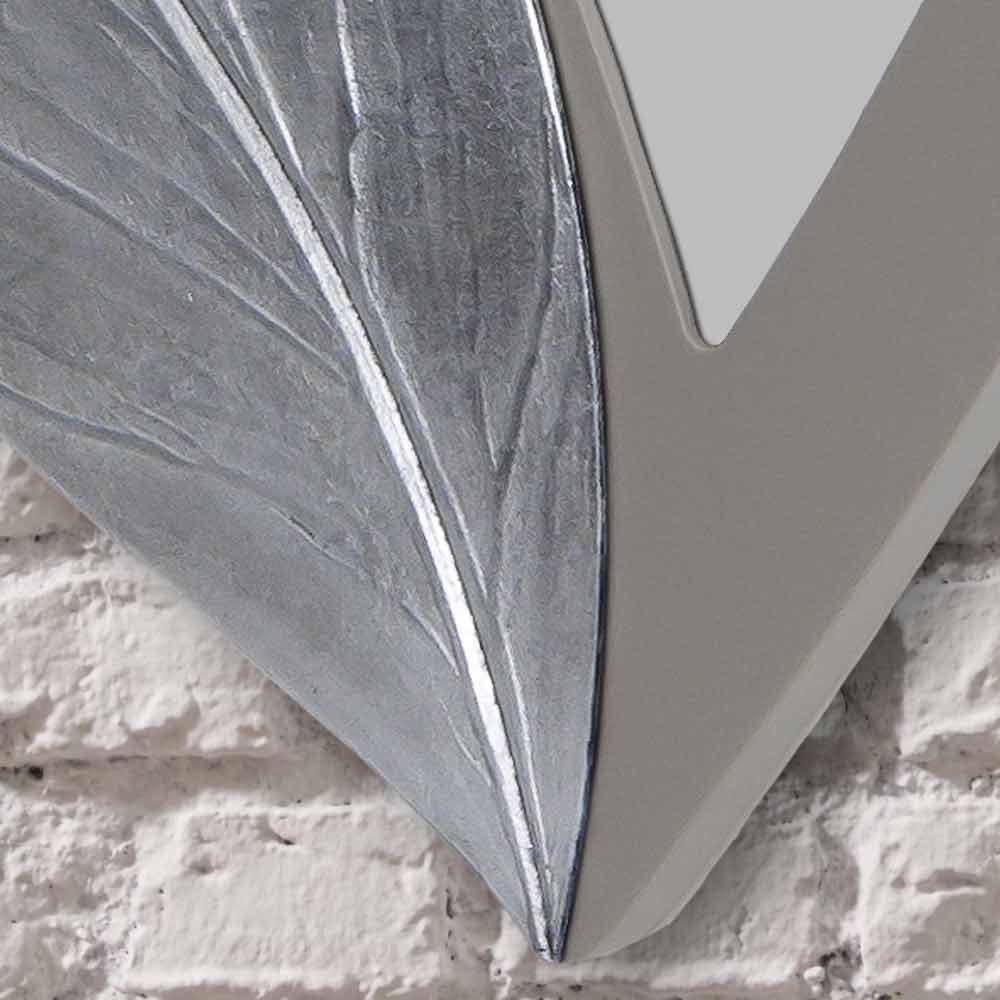 Struttura sagomata laccata tortora, con dettaglio decorato a mano, materico e foglia argento, affissione orizzontale / verticale.