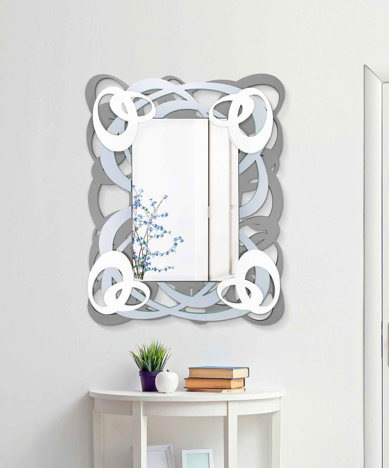 Specchio da parete dal design moderno in legno colorato tagliato a laser made in Italy.