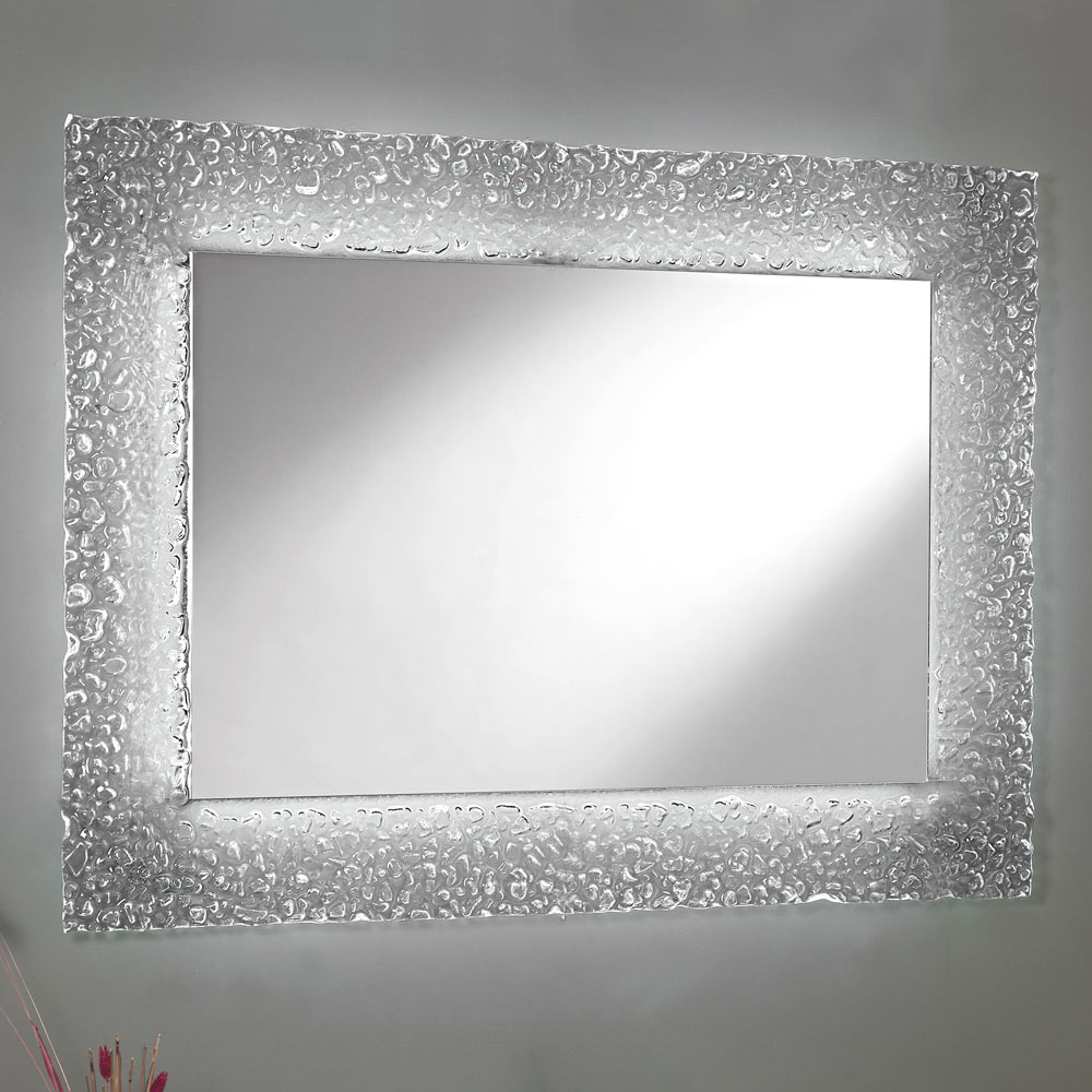 Specchio decorativo da parete con cornice in vetro fuso e illuminazione LED integrata, alta qualità made in Italy.