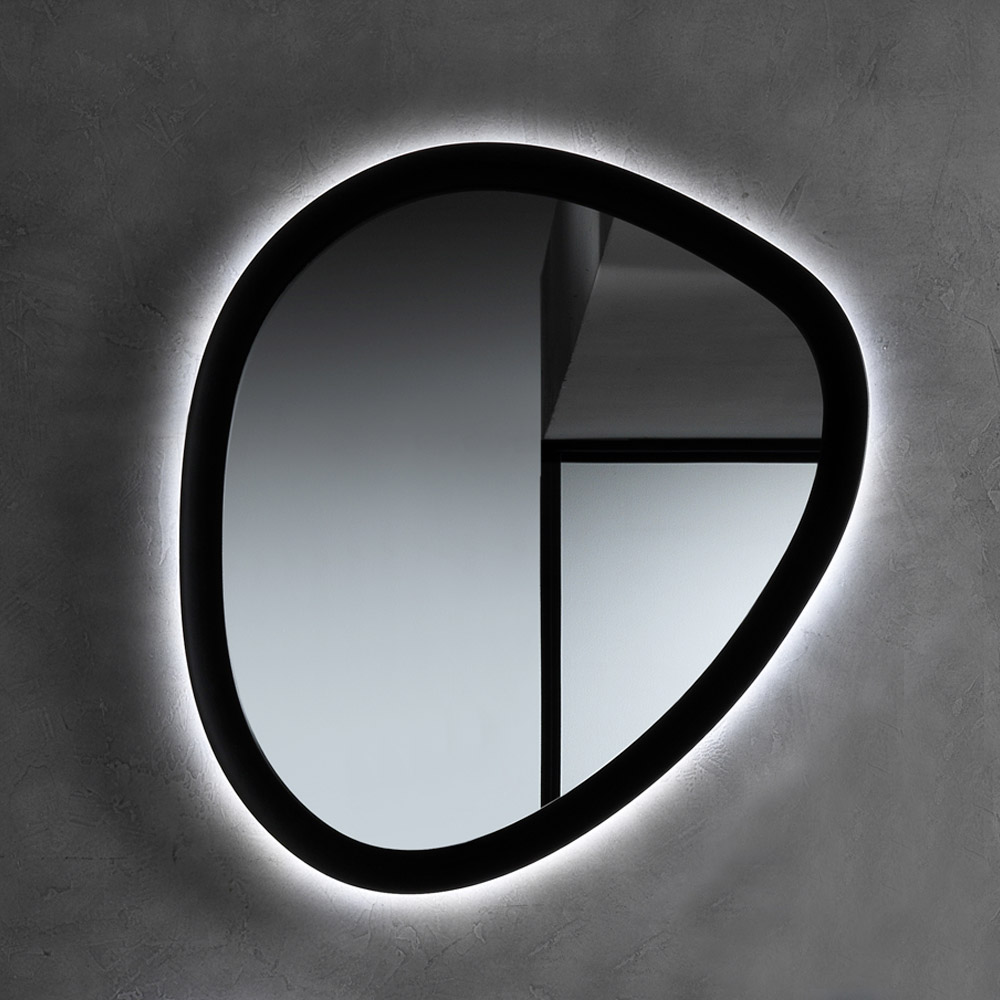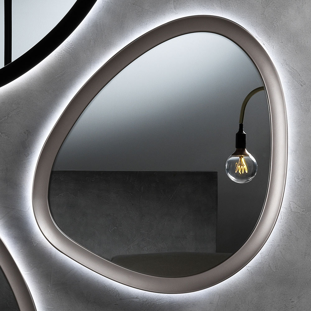 Immergiti nel fascino di questo specchio con retroilluminazione, vero e proprio elemento d'arredo che trasformano ogni parete in una galleria d'arte moderna. Con la sua forma si distacca dalla convenzionalità, diventando punto focale che cattura lo sguardo e stimolano la fantasia.