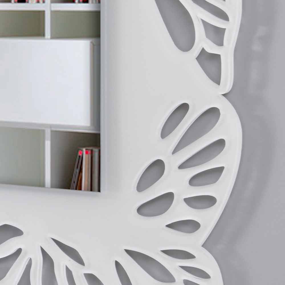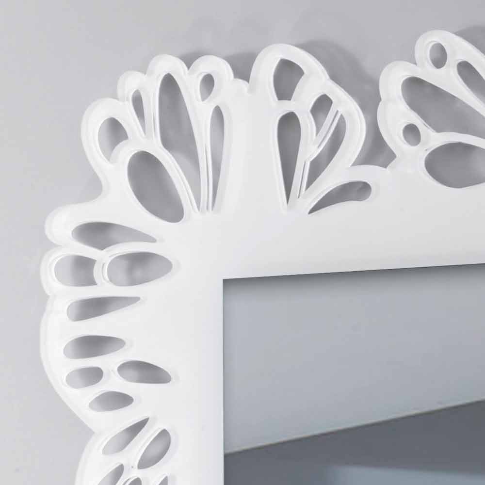 Specchiera rettangolare a parete con cornice bianca decorata, in plexiglass di design moderno made in Italy.