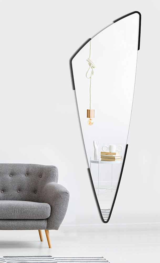 Specchio decorativo da muro moderno lungo con cornice minimale in diversi colori, design sagomato made in Italy.