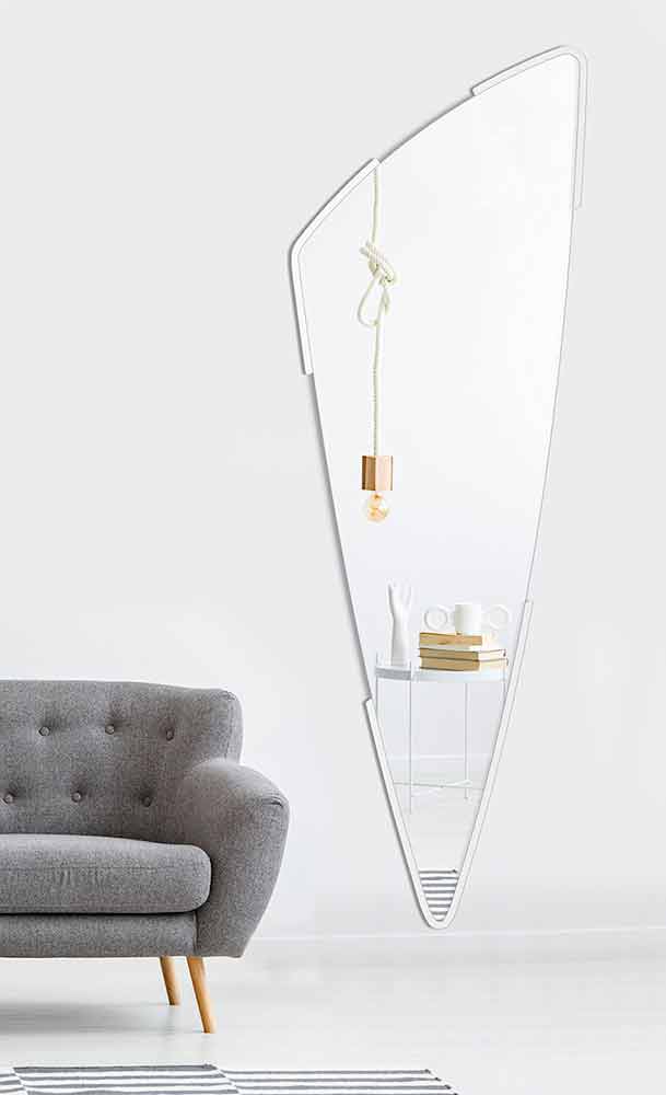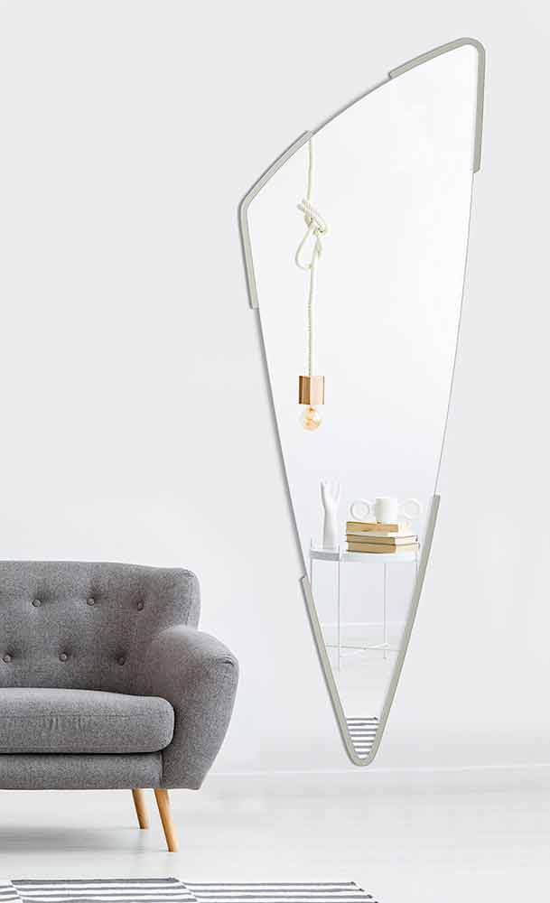 specchiera da parete stilizzata dalla sagomata con specchio a sbalzo presenta linee eleganti e forme moderne abbinate ad una raffinata finitura laccata per un risultato dall'impatto estetico minimale e decorativo, in uno stile unico.
