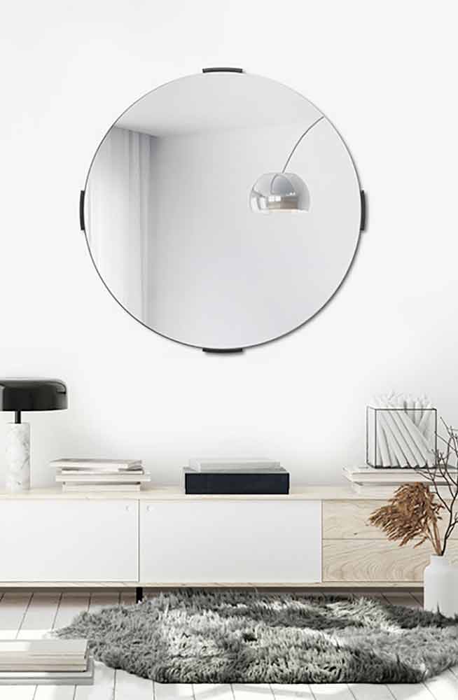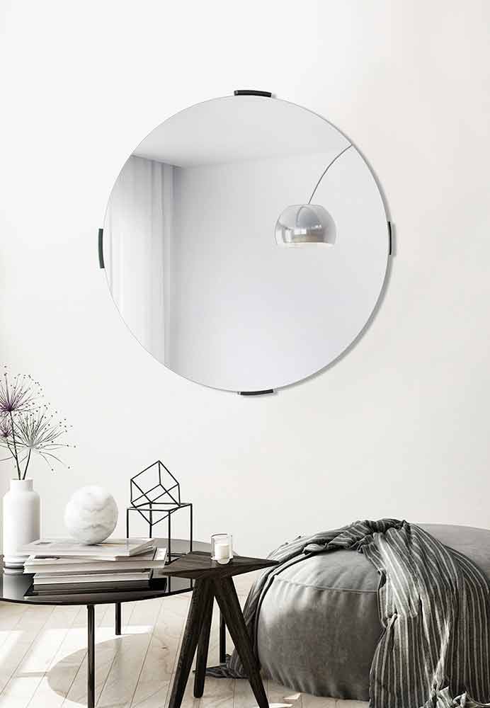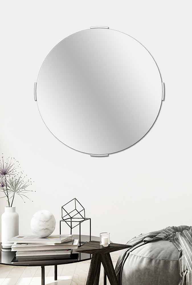 Specchio a parete a sbalzo moderno e rotondo di design minimale made in Italy.