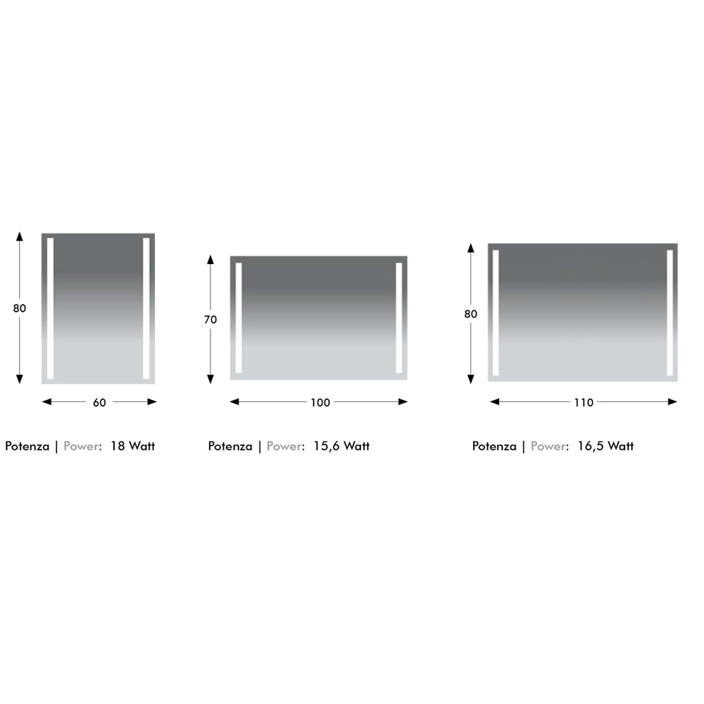 retroilluminazione a LED e dettagli sabbiati. La sua struttura ne permette il montaggio sia in orientamento verticale che orizzontale assicurando di poter soddisfare qualsiasi necessità e richiesta al meglio a seconda dei propri spazi.