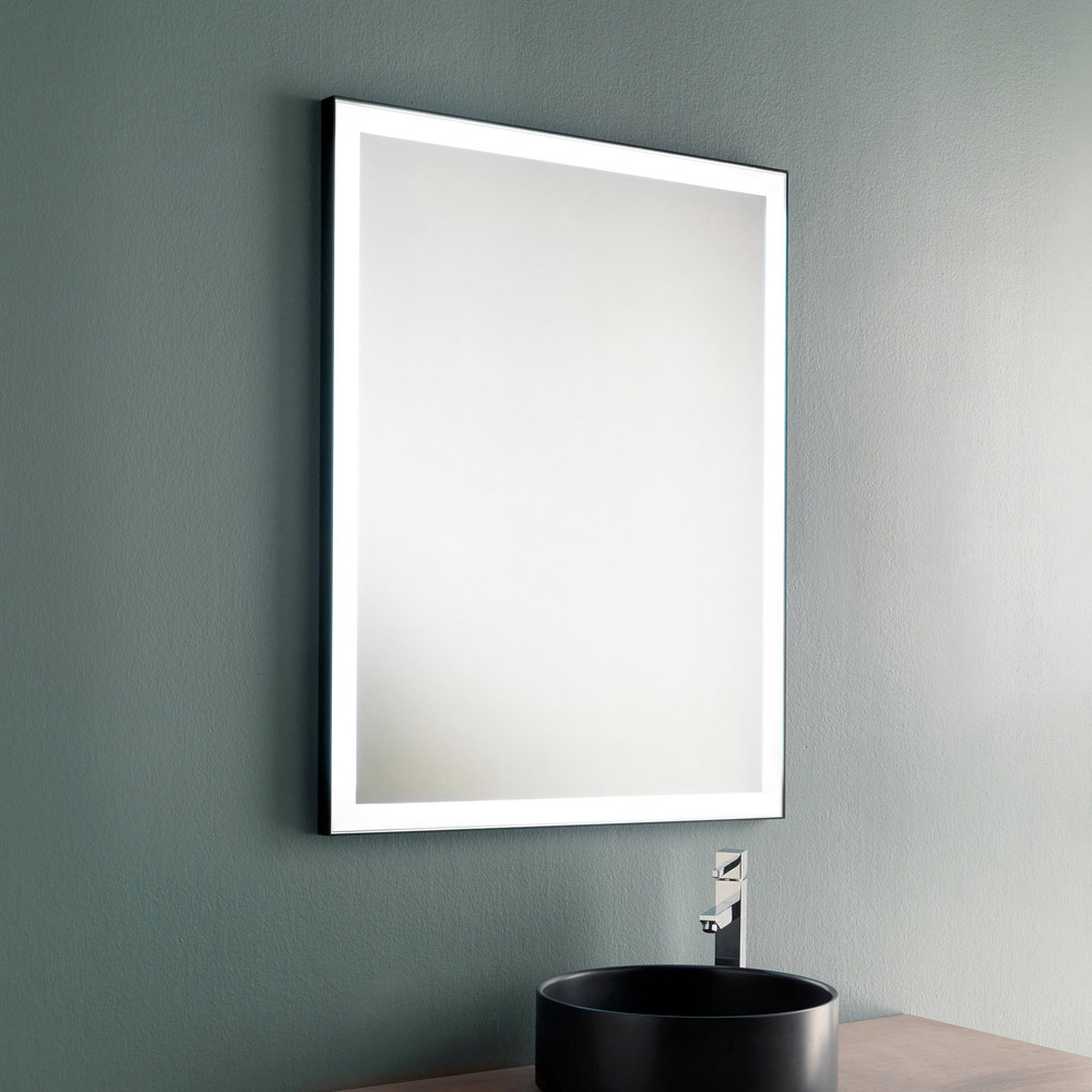 Specchio da parete per bagno con cornice in metallo e luce led, alta qualità made in Italy.