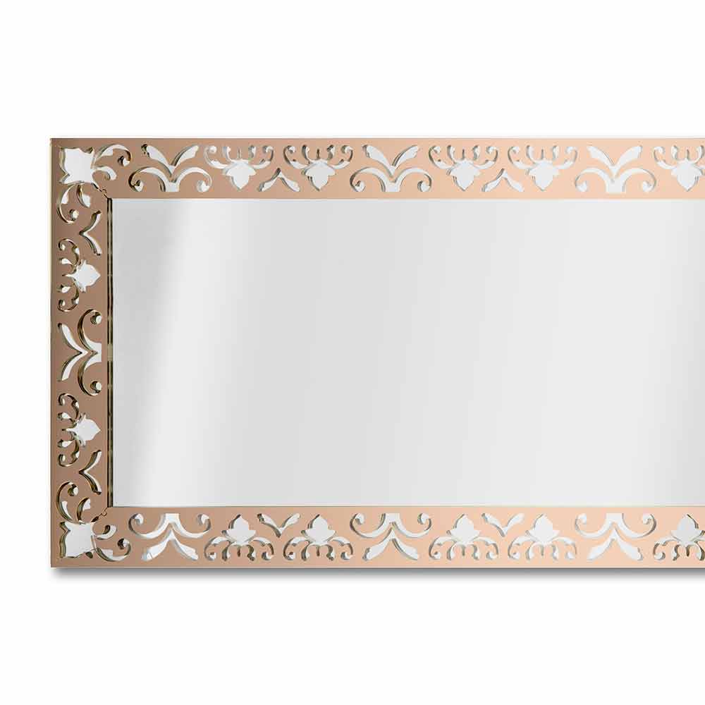 Specchiera di design moderno rettangolare da parete con cornice in plexiglass oro, argento o bronzo made in Italy.