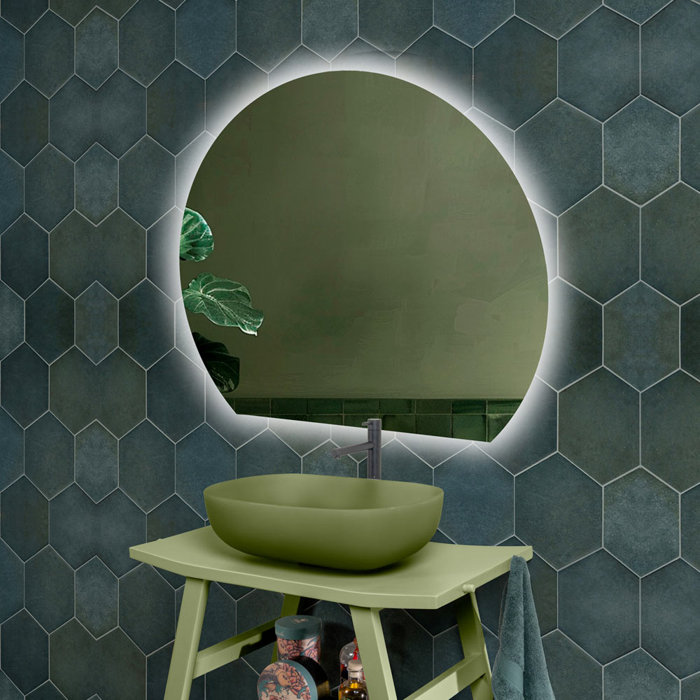 La luce LED integrata, diffusa in modo uniforme lungo il perimetro, crea un effetto soffuso che valorizza la purezza della forma circolare e contribuisce a generare un’atmosfera accogliente e raffinata. Perfetto per accompagnare i momenti di cura personale, garantisce un’illuminazione funzionale e al tempo stesso suggestiva.