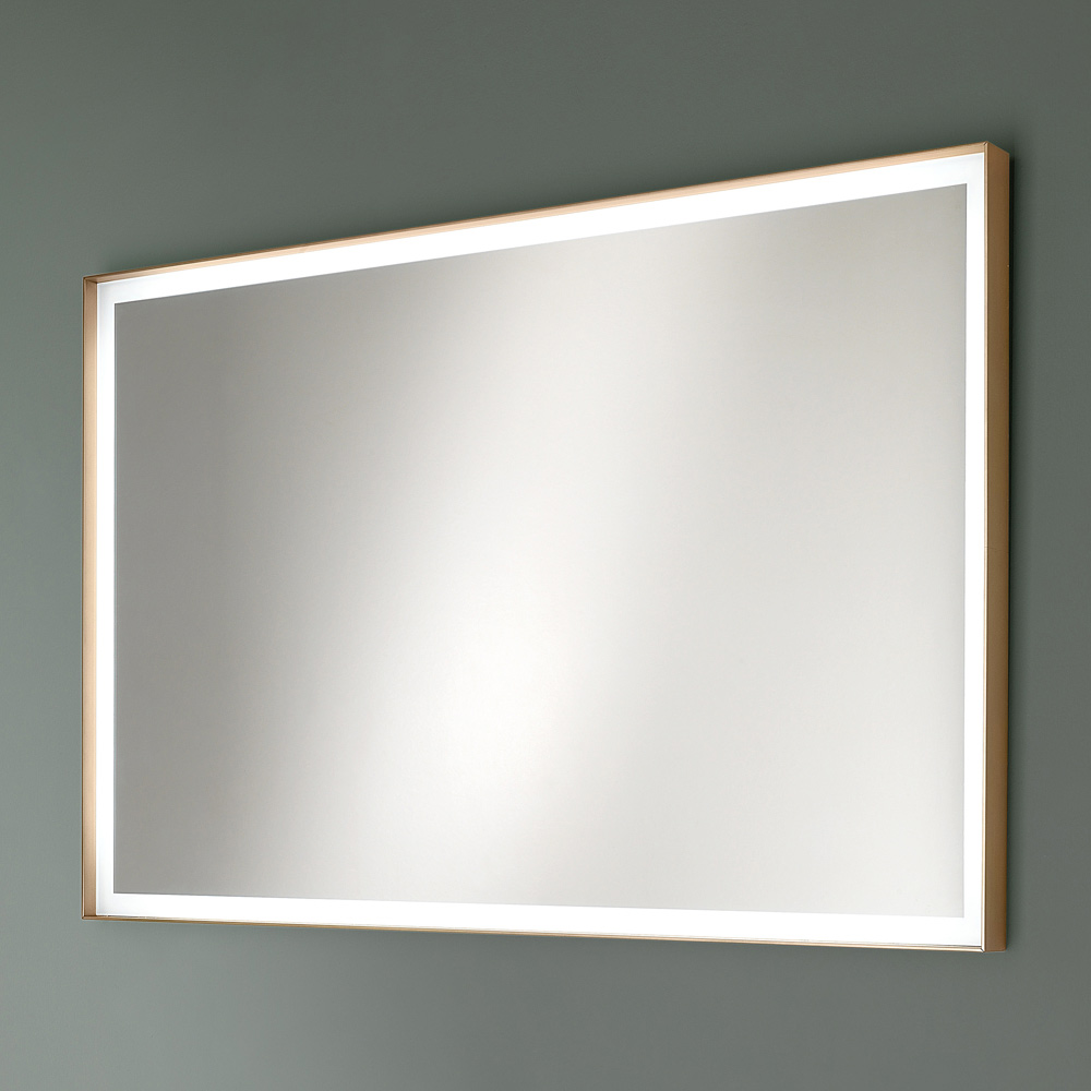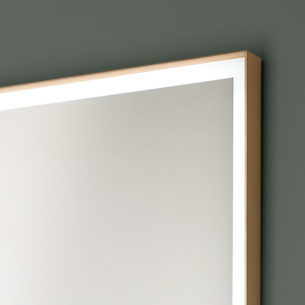 Specchio a muro rettangolare con cornice in metallo in 4 finiture e luce led, made in Italy.