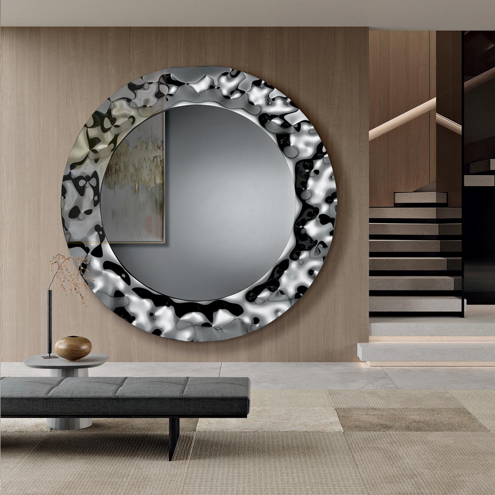 Elegante specchio da parete di design Made in Italy, ideale per valorizzare ambienti come ingresso, soggiorno o zona notte. Il suo design raffinato unisce linee morbide e dettagli materici, trasformando lo specchio in un vero elemento decorativo capace di impreziosire la parete.