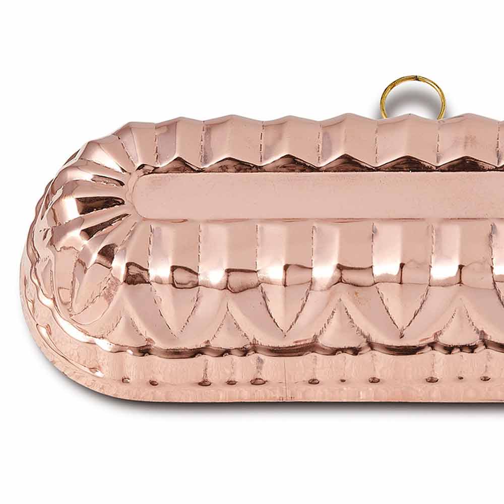 Tortiera da forno ovale per plumcake in rame stagnato a mano e anello in ottone, made in Italy.