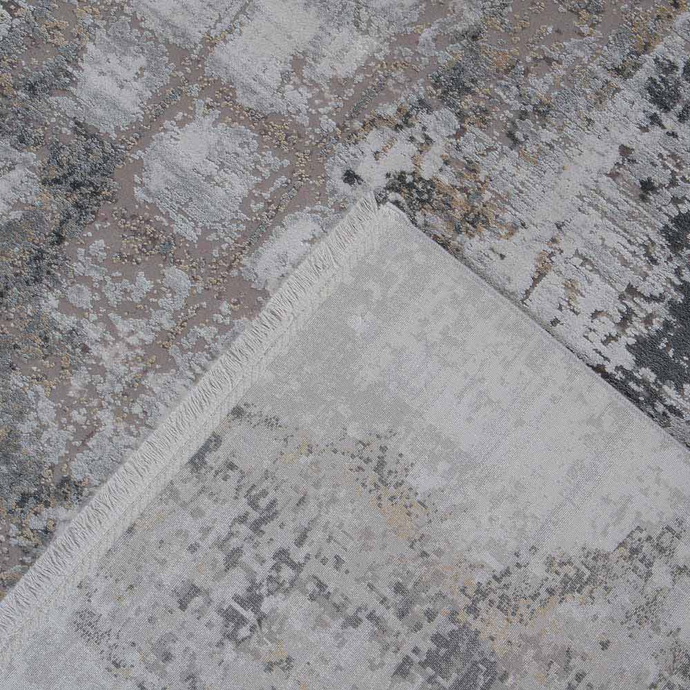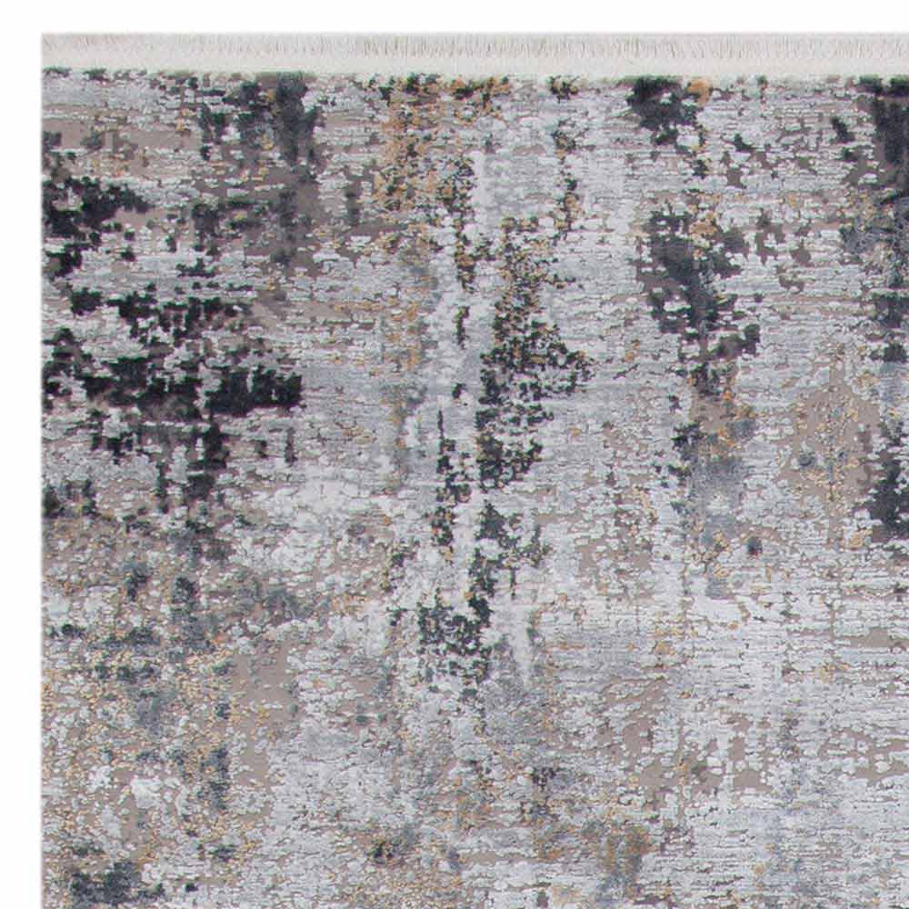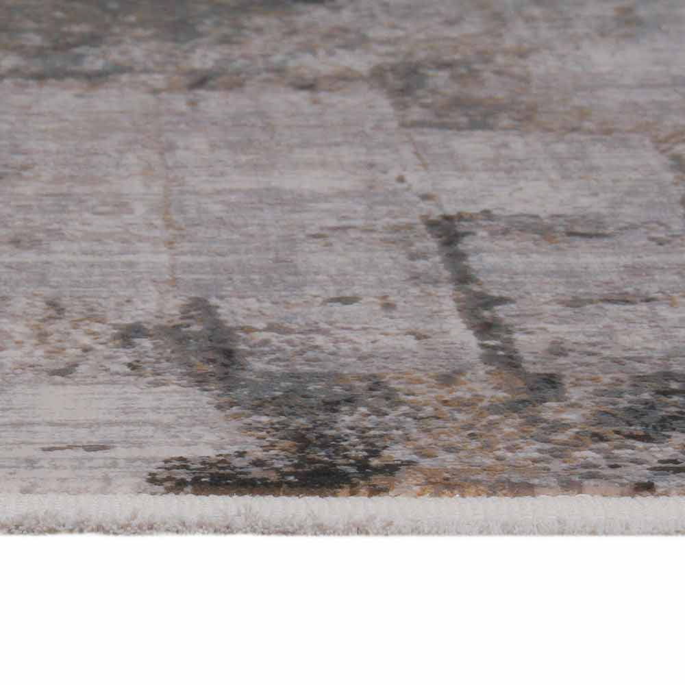 Tappeto color grigio-beige in due dimensioni, di design vintage in acrilico e viscosa, antiscivolo con decoro.