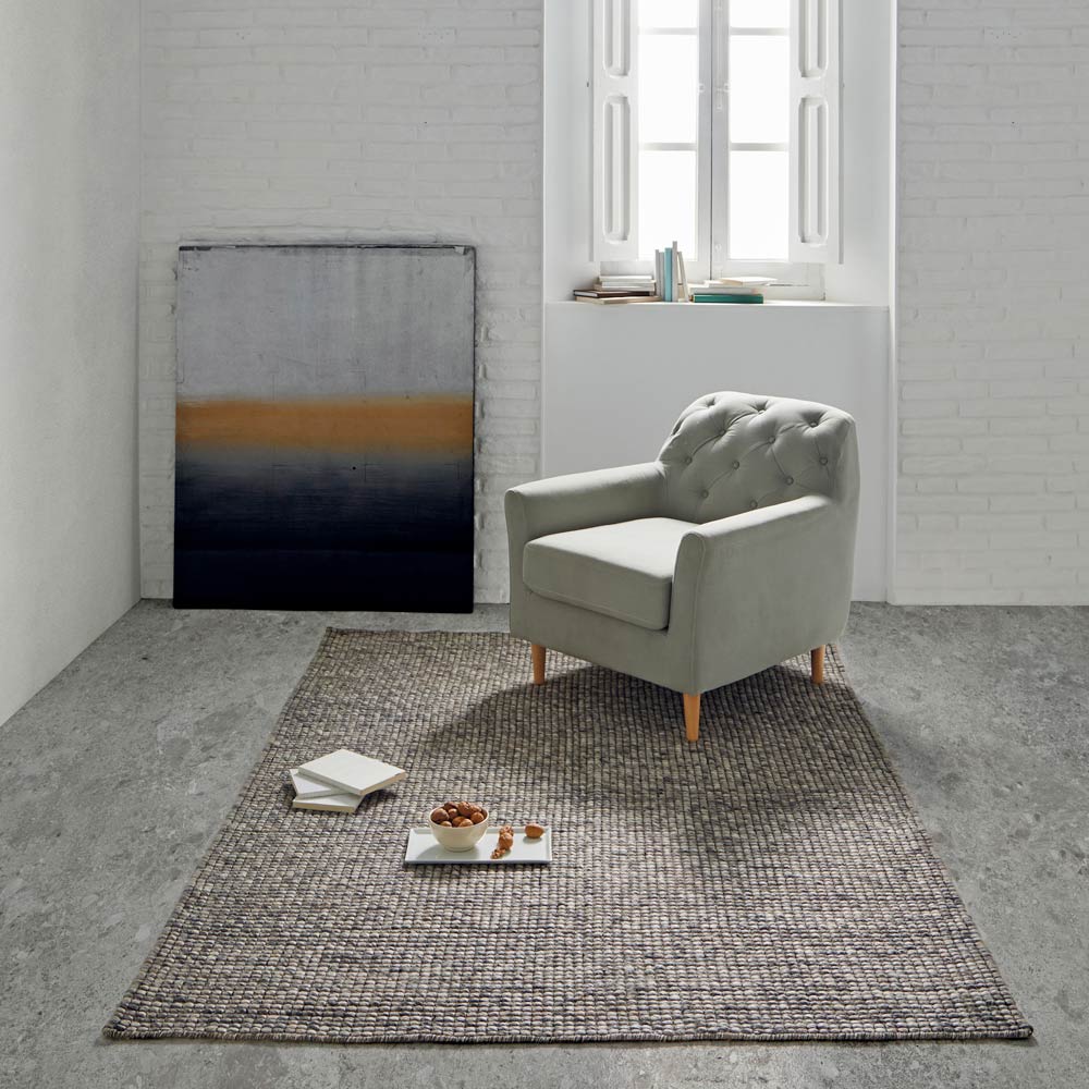 Tappeto da salotto moderno tessuto a mano su telaio in lana e cotone.
