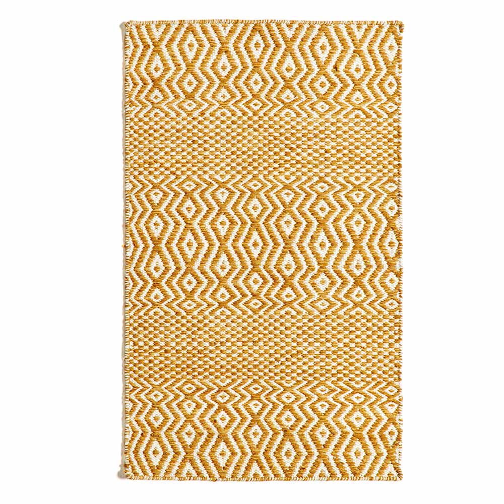 Tappeto da salotto tessuto a mano in lana e cotone design a fantasia.