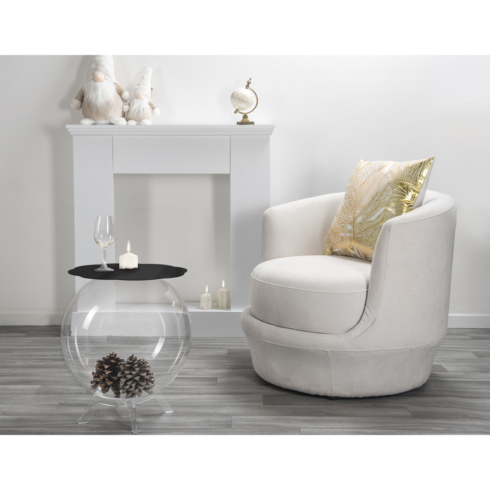 Tavolino/contenitore in plexiglass dalla struttura sferica utilizzabile come vaso per composizioni floreali, come acquario, come contenitore di giocattoli o come portabiancheria. La trasparenza del tavolo BIFFY lo rende un pezzo dal design discreto, facilmente collocabile nell'ambiente domestico. Il ripiano è in plexiglass PMMA 100% da polimero vergine di colore nero. Il plexiglass è antiurto, indeformabile, inalterabile e termoisolante. La luminosità e la brillantezza si mantengono costanti ed inalterati nel tempo. Il plexiglass PMMA da polimero vergine utilizzato da è atossico, ipoallergico, inodore ed antibatterico. Riciclabile 100%. Pensato, progettato e realizzato in Italia, con materiali italiani.