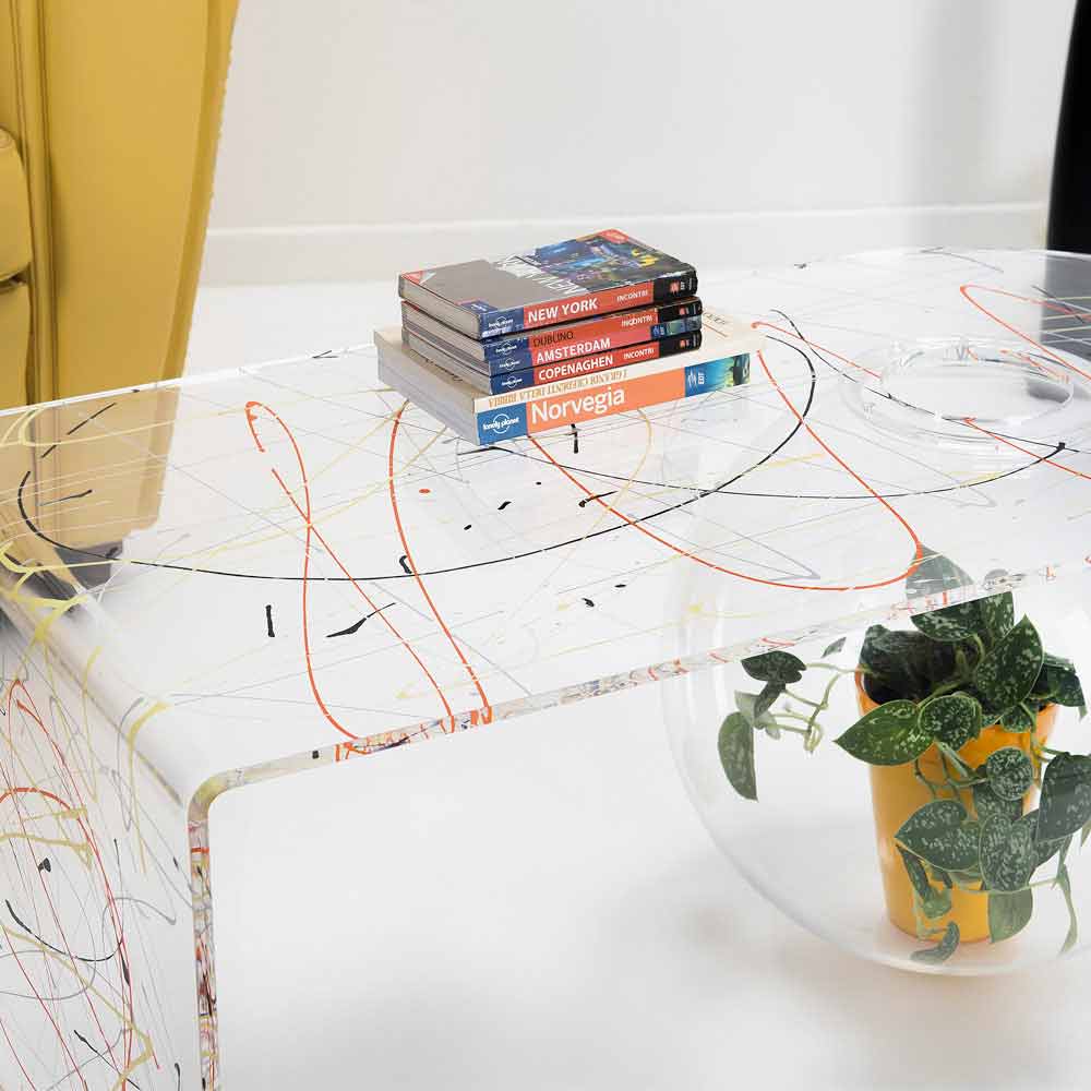 Tavolino a ponte da salotto in plexiglass realizzato in Italia, Bolly