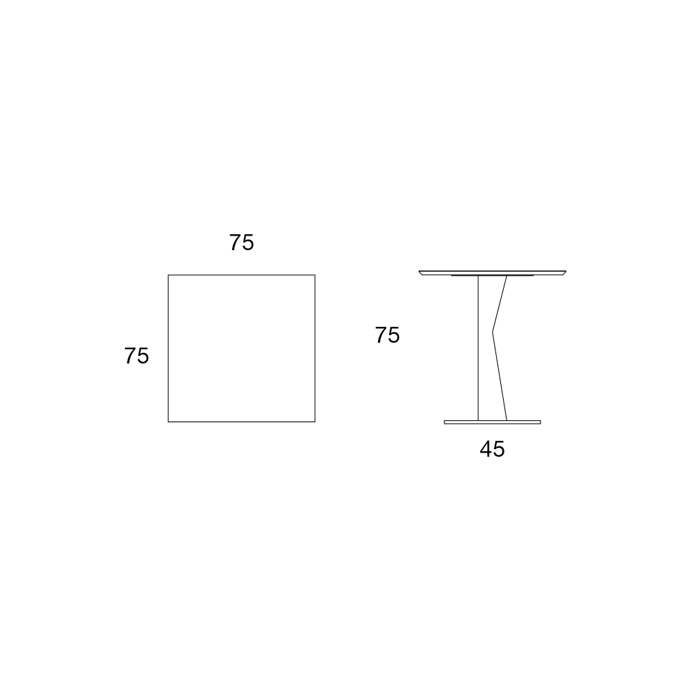 Tavolo quadrato in ceramica opaca e base inclinata in metallo, made in Italy.