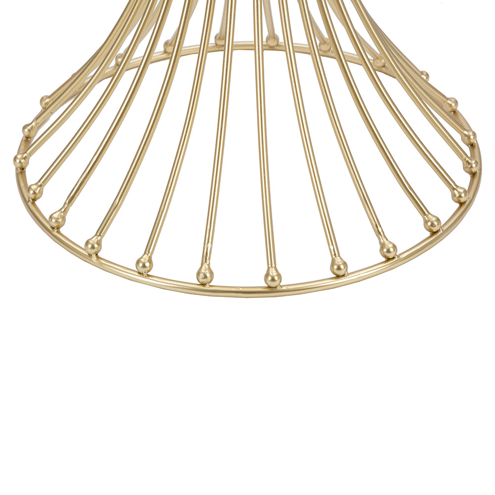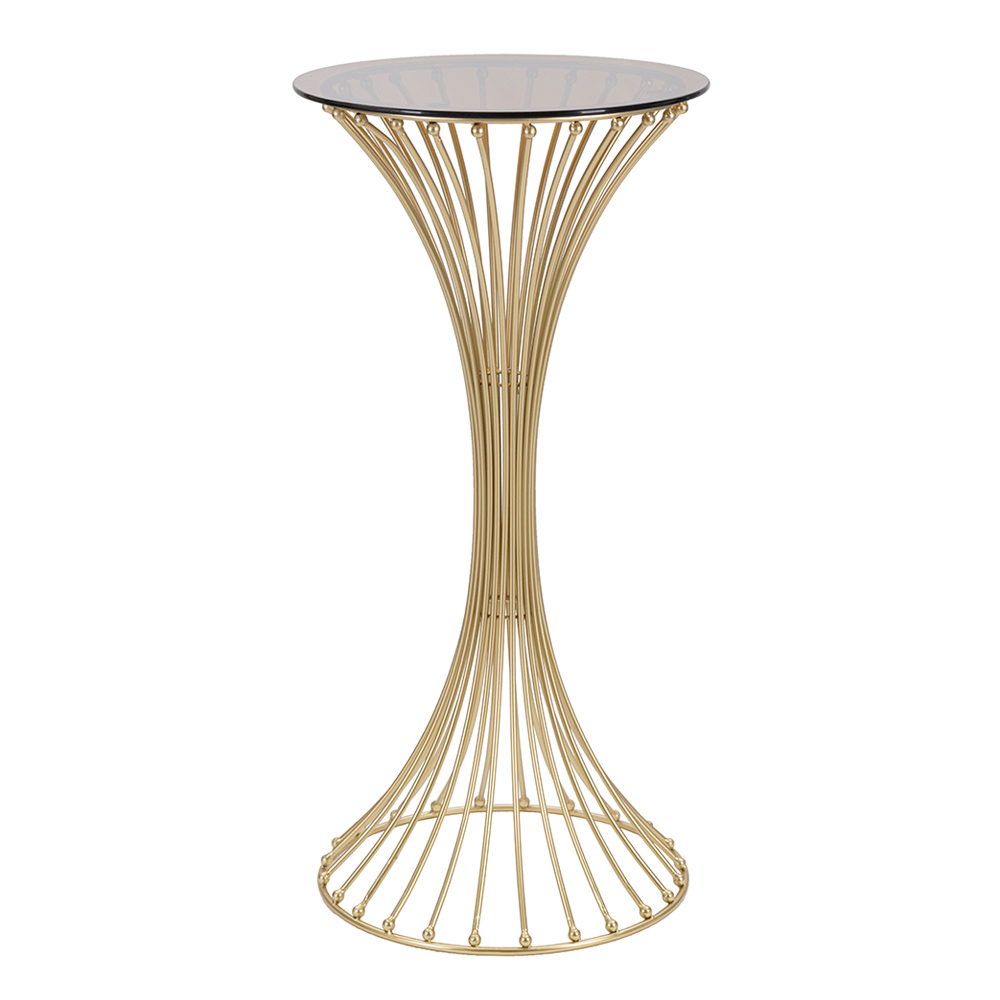 Questo tavolino alto è un esemplare distinto di eleganza e design contemporaneo. La base dorata si slancia in un elegante groviglio di linee che ricordano i sottili rami di una pianta, sostenendo un piano circolare in vetro. La combinazione di vetro e ferro dorato non solo esalta la bellezza visiva ma parla anche della qualità dei materiali, garantendo durata e stabilità.
