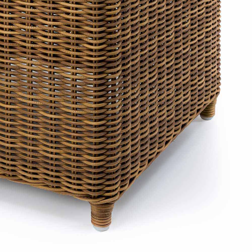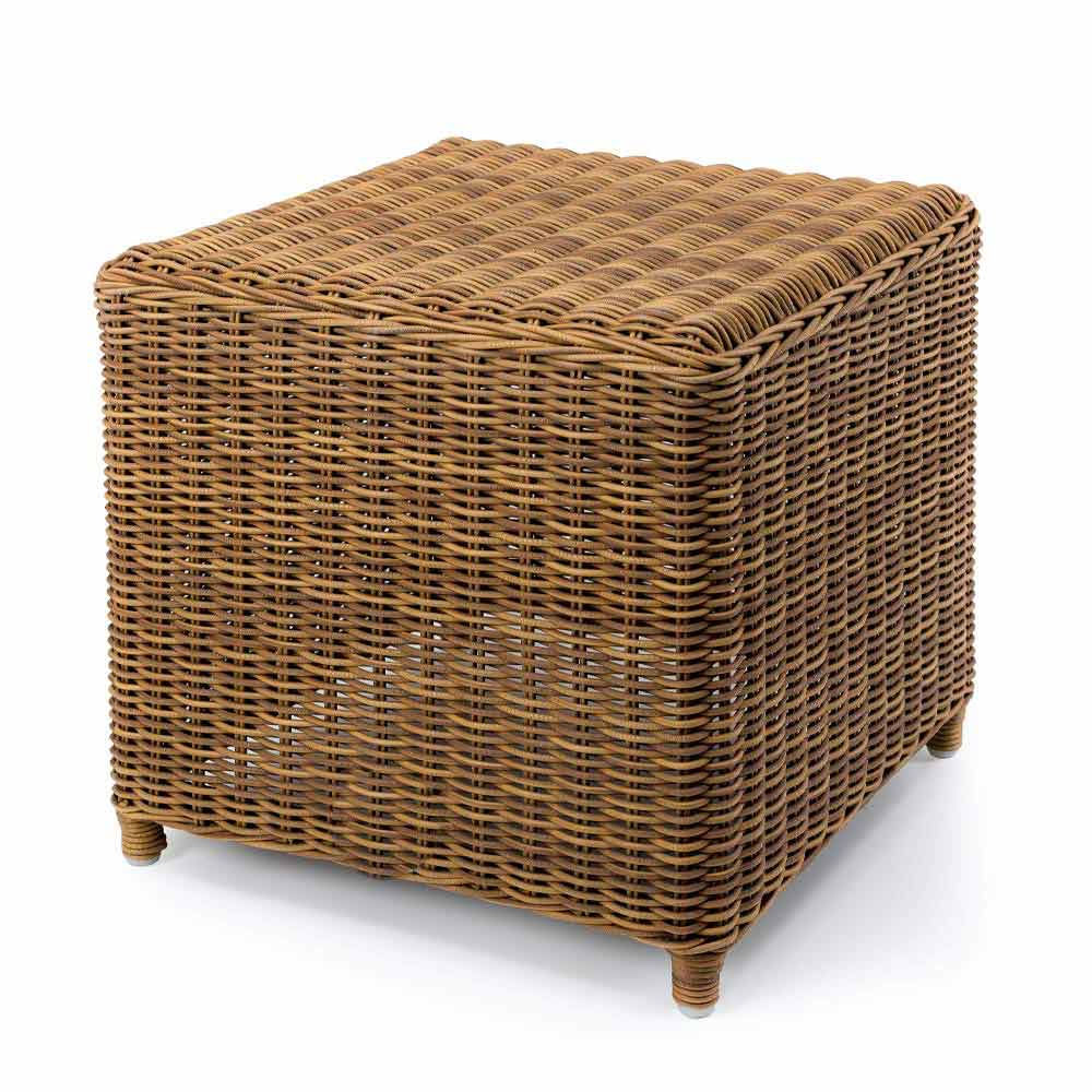 Tavolino d'appoggio quadrato in pregiato rattan sintetico intrecciato, design di lusso.